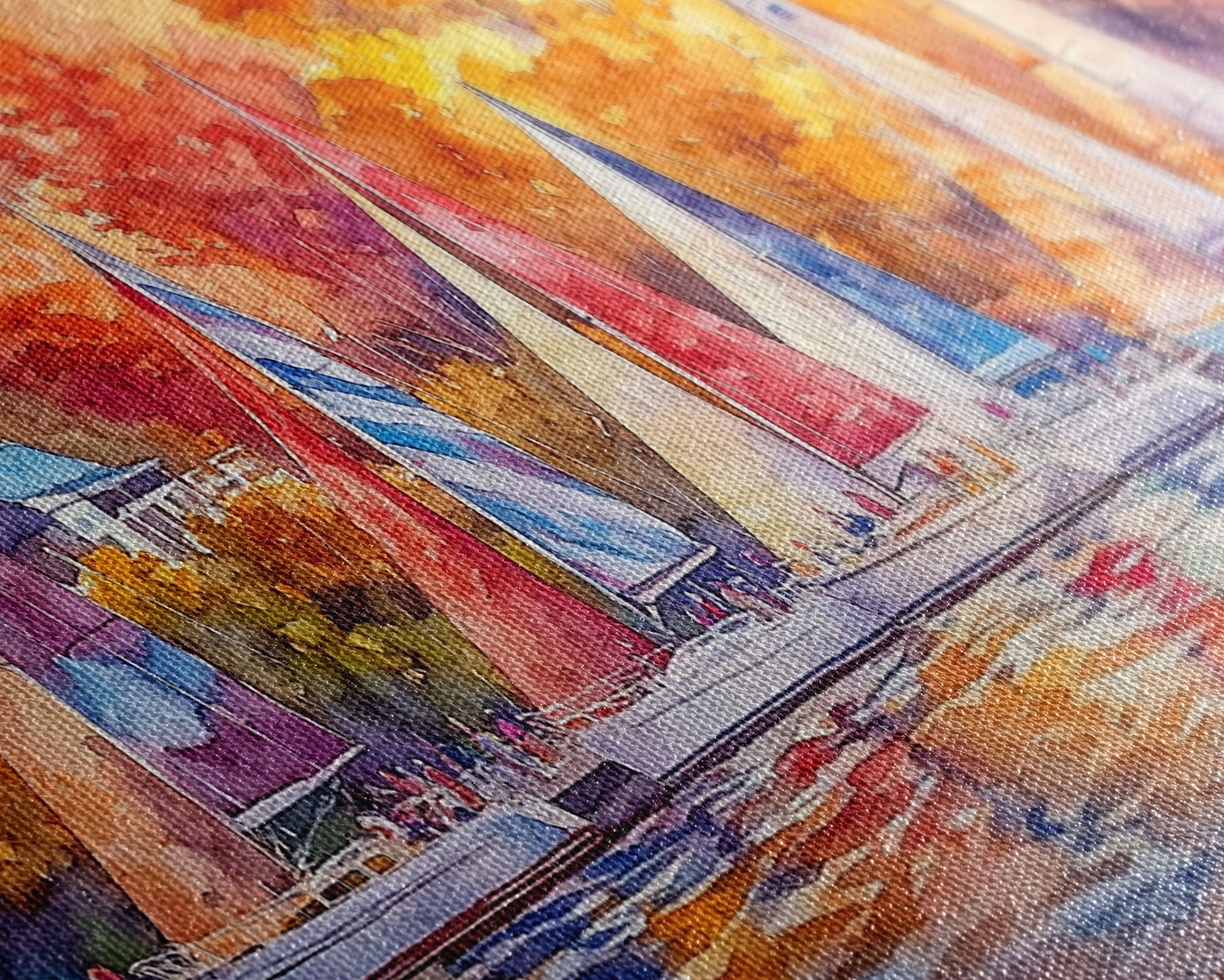 Most of our canvases are made in the USA, with the exception of canvases ordered with the light oak unstained frames, and any large canvases (24x48, 30x60, 16x48 and 20x60) ordered WITH a frame. These are temporarily made in and shipped from Europe, while we try to find a more consistent supplier in the USA.