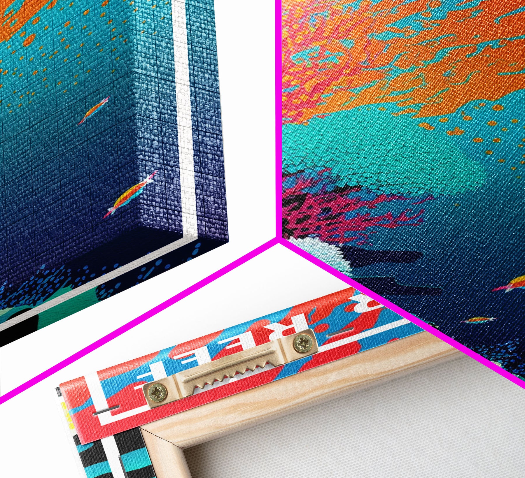 Hello and thank you for taking the time to view our modern high quality giclée artwork! We offer both posters and stretched canvas prints. Our posters are printed on Ultra Matte 60 lb / 230 GSM high quality photo paper, with a thickness of 10 mil. Our canvases are printed on museum grade 350 GSM canvas material with ECO friendly archival grade ink, then hand stretched and stapled over premium, FSC certified and shrink resistant frames. Designed and built to last a lifetime.