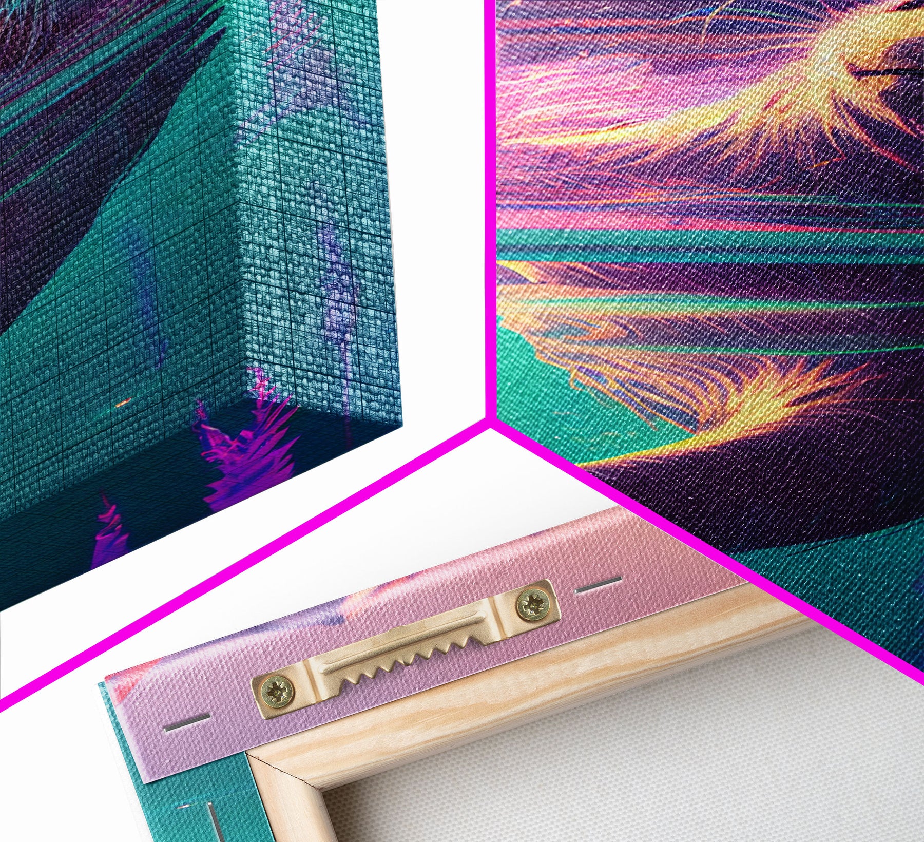 Hello and thank you for taking the time to view our modern high quality giclée artwork! We offer both posters and stretched canvas prints. Our posters are printed on Ultra Matte 60 lb / 230 GSM high quality photo paper, with a thickness of 10 mil. Our canvases are printed on museum grade 350 GSM canvas material with ECO friendly archival grade ink, then hand stretched and stapled over premium, FSC certified and shrink resistant frames. Designed and built to last a lifetime.