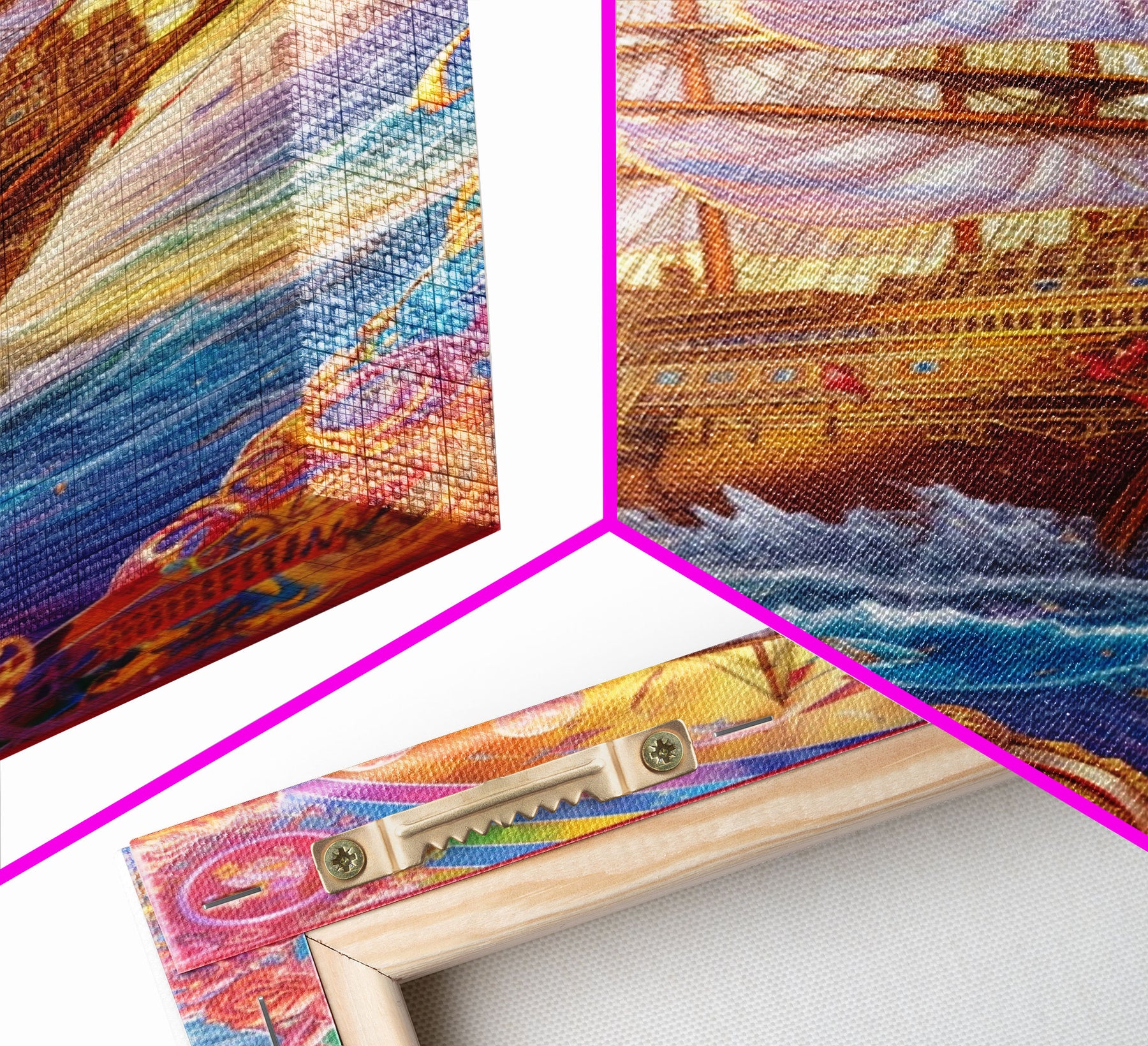 Most of our canvases are made in the USA, with the exception of canvases ordered with the light oak unstained frames, and any large canvases (24x48, 30x60, 16x48 and 20x60) ordered WITH a frame. These are temporarily made in and shipped from Europe, while we try to find a more consistent supplier in the USA.
