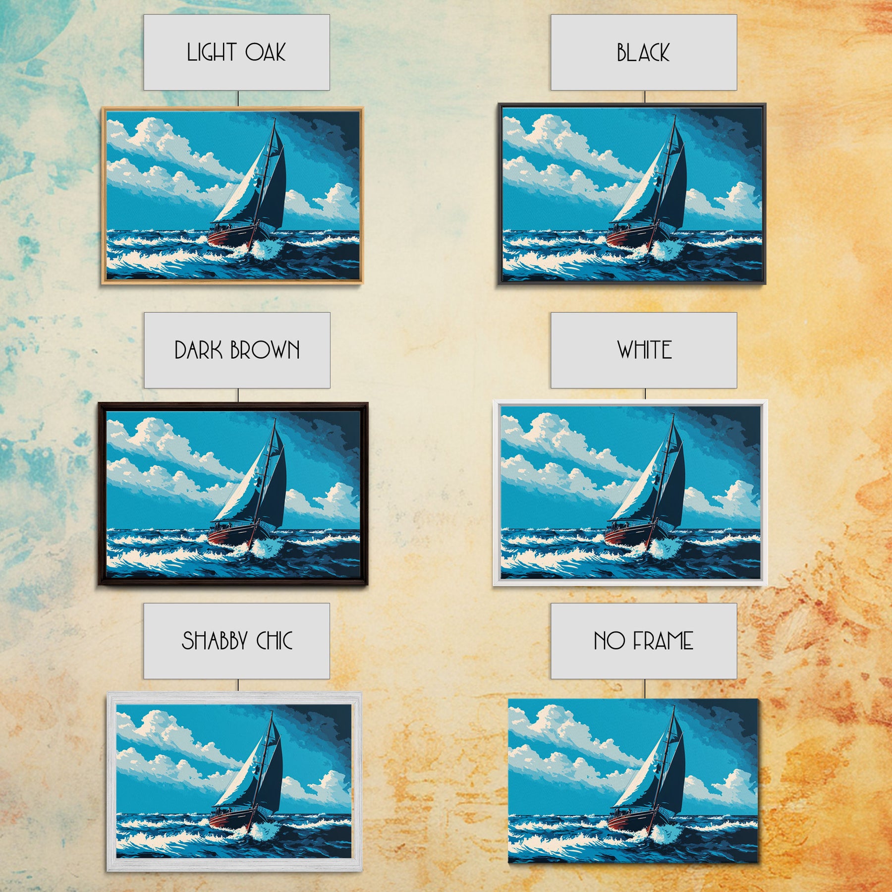 Most of our canvases are made in the USA, with the exception of canvases ordered with the light oak unstained frames, and any large canvases (24x48, 30x60, 16x48 and 20x60) ordered WITH a frame. These are temporarily made in and shipped from Europe, while we try to find a more consistent supplier in the USA.