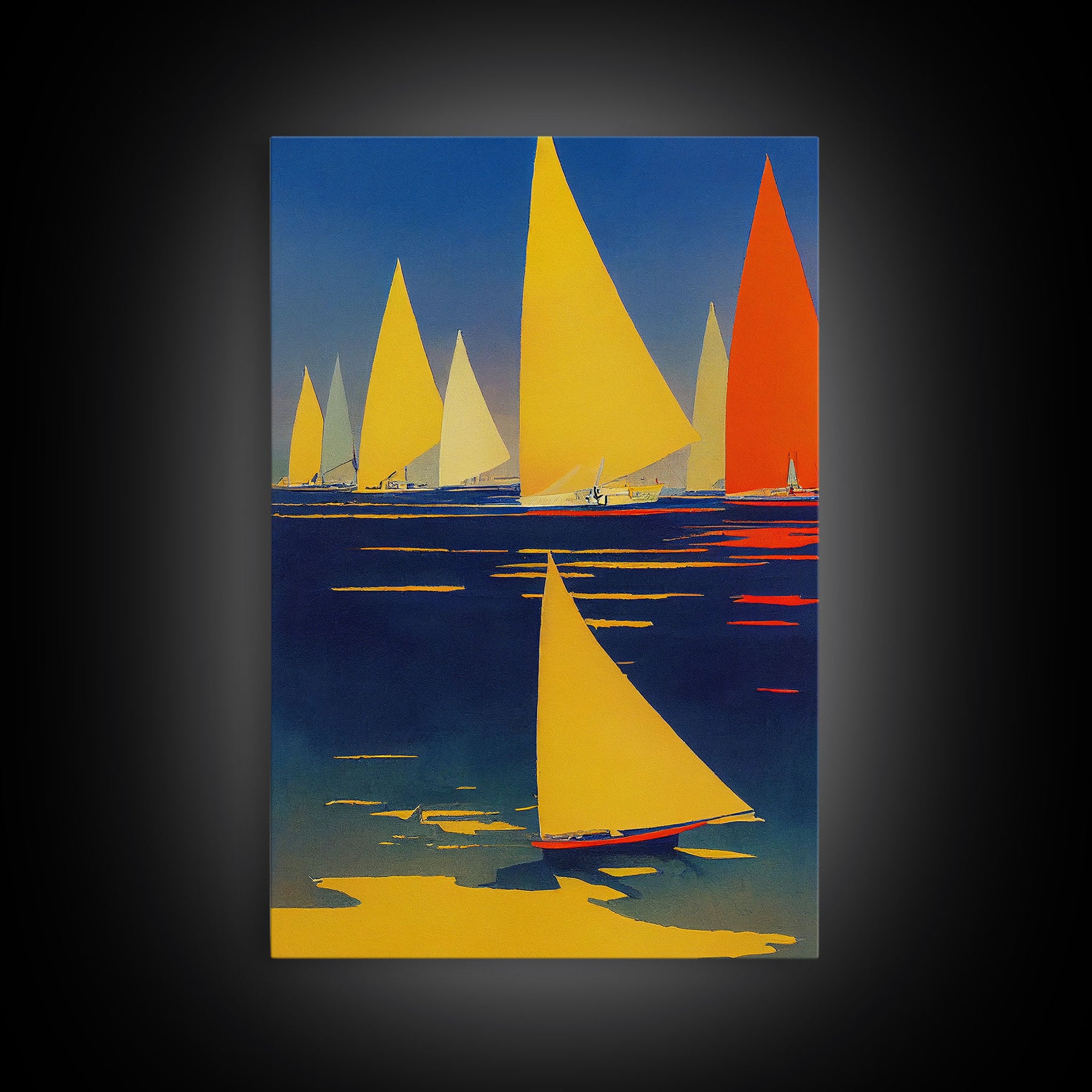 Nautical Wall Art, Sailboats On San Francisco Bay, Framed Canvas Print, Original Nautical Art, Nautical Canvas Art