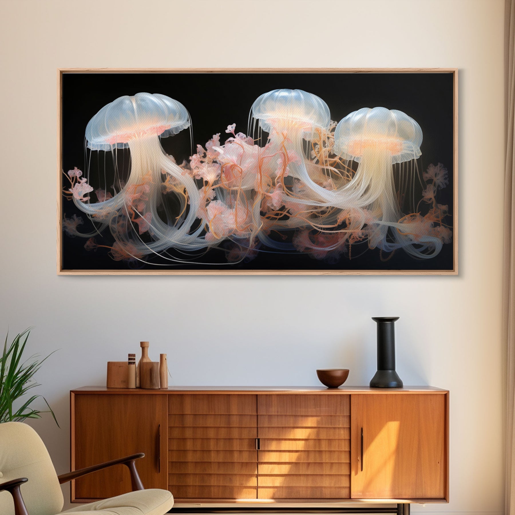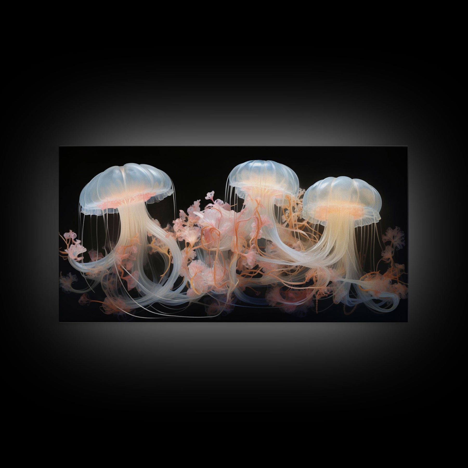 Ocean Wall Art, Jelly Fish Art, Nautical Wall Art, Panoramic Art, Wall Art, Canvas Art, Landscape Art, Gift For Him, Dorm Room Art, Prints