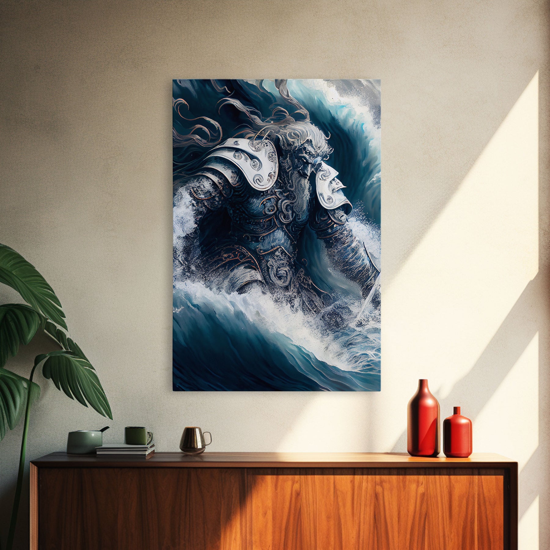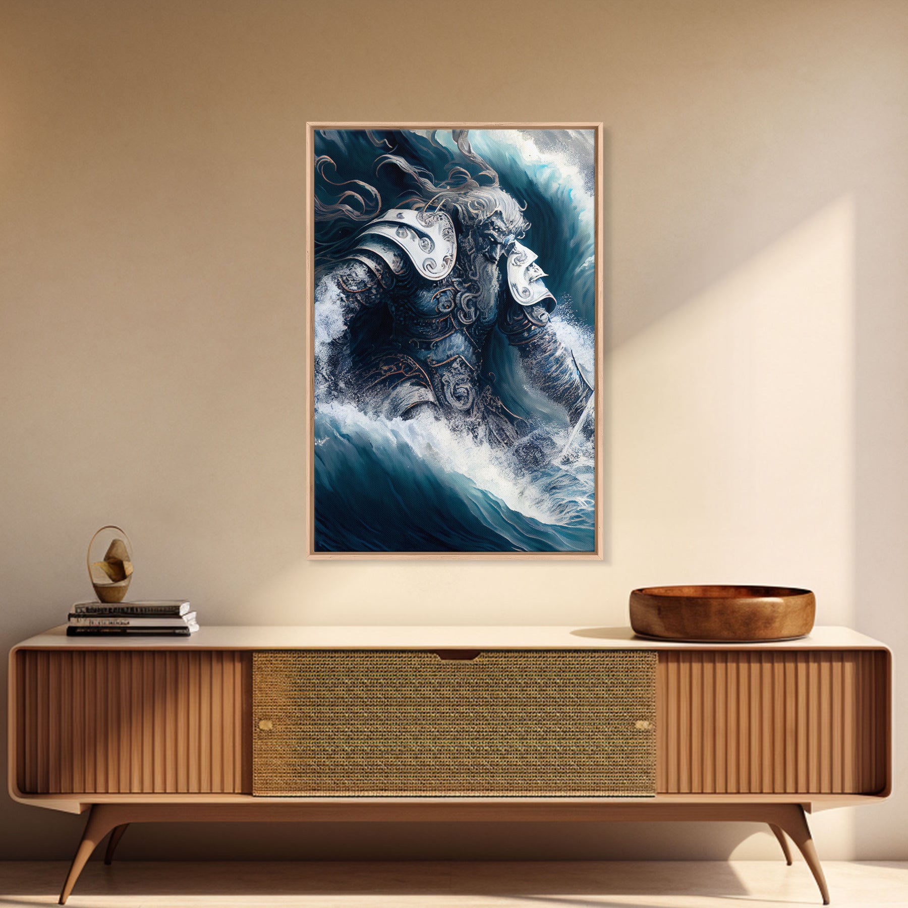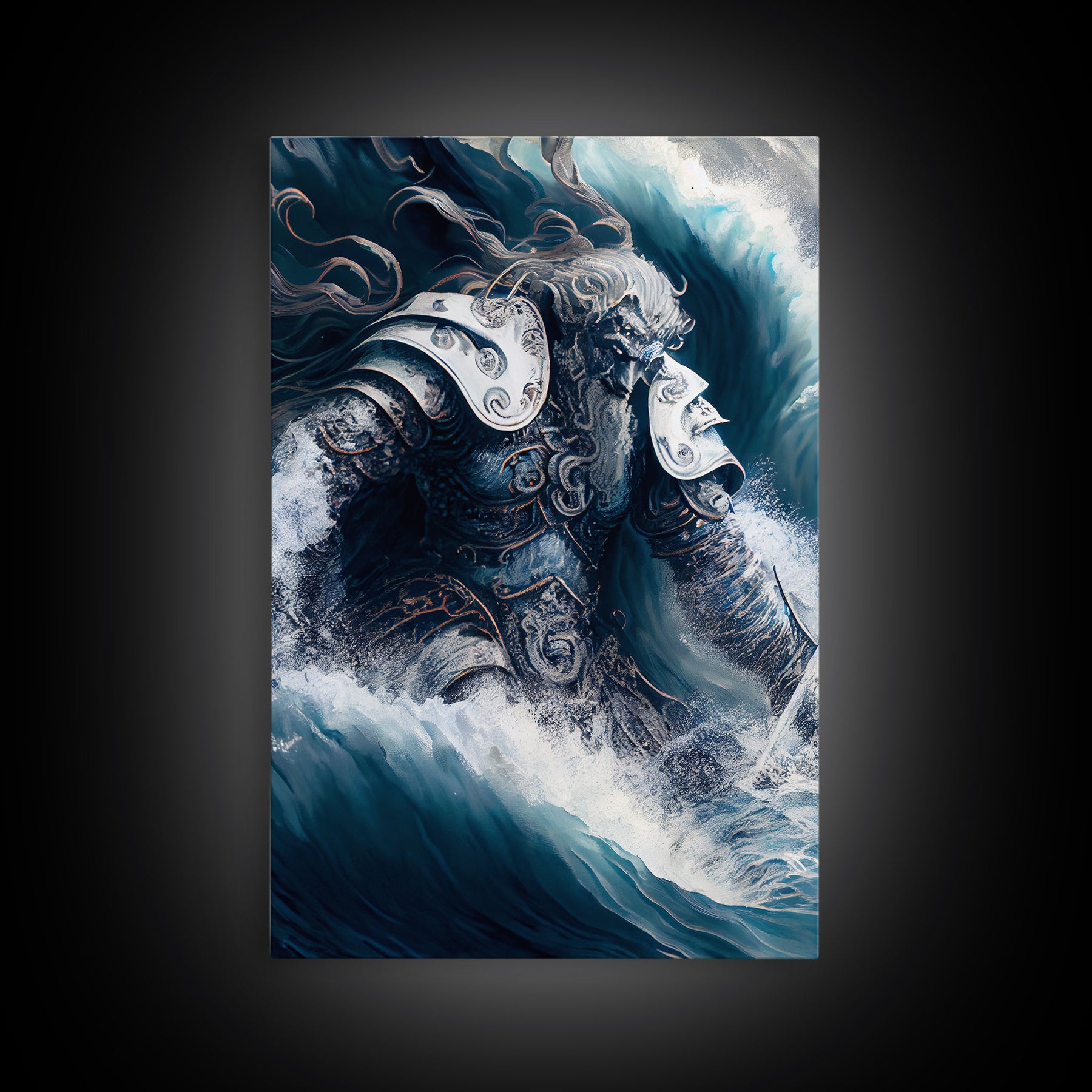Poseidon, god of the sea, Greek mythology art, framed canvas print