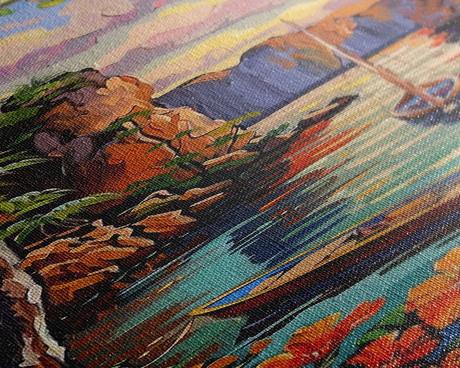 Most of our canvases are made in the USA, with the exception of canvases ordered with the light oak unstained frames, and any large canvases (24x48, 30x60, 16x48 and 20x60) ordered WITH a frame. These are temporarily made in and shipped from Europe, while we try to find a more consistent supplier in the USA.