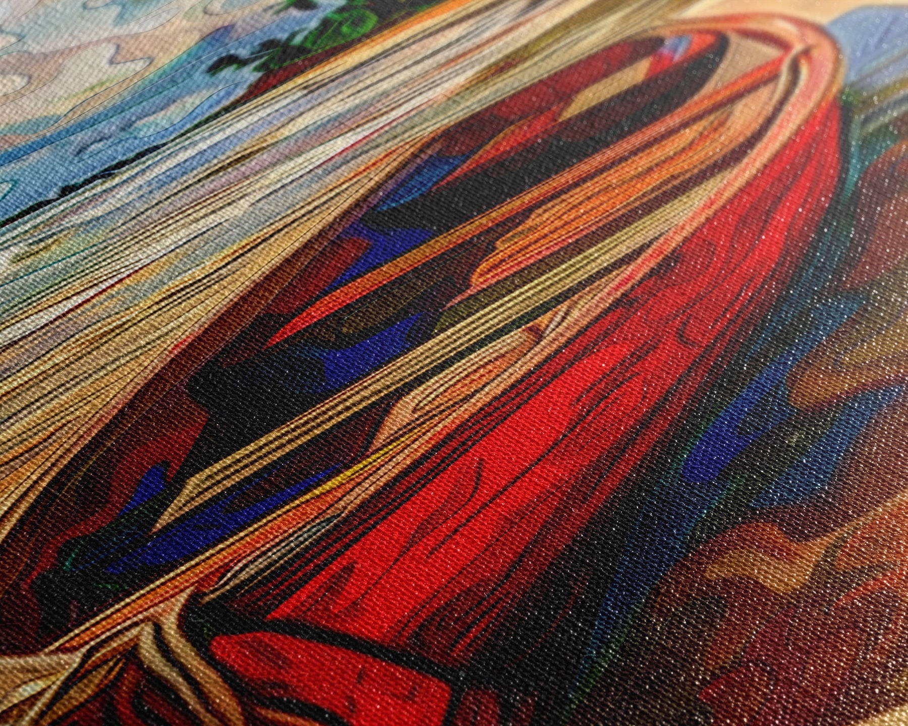Most of our canvases are made in the USA, with the exception of canvases ordered with the light oak unstained frames, and any large canvases (24x48, 30x60, 16x48 and 20x60) ordered WITH a frame. These are temporarily made in and shipped from Europe, while we try to find a more consistent supplier in the USA.