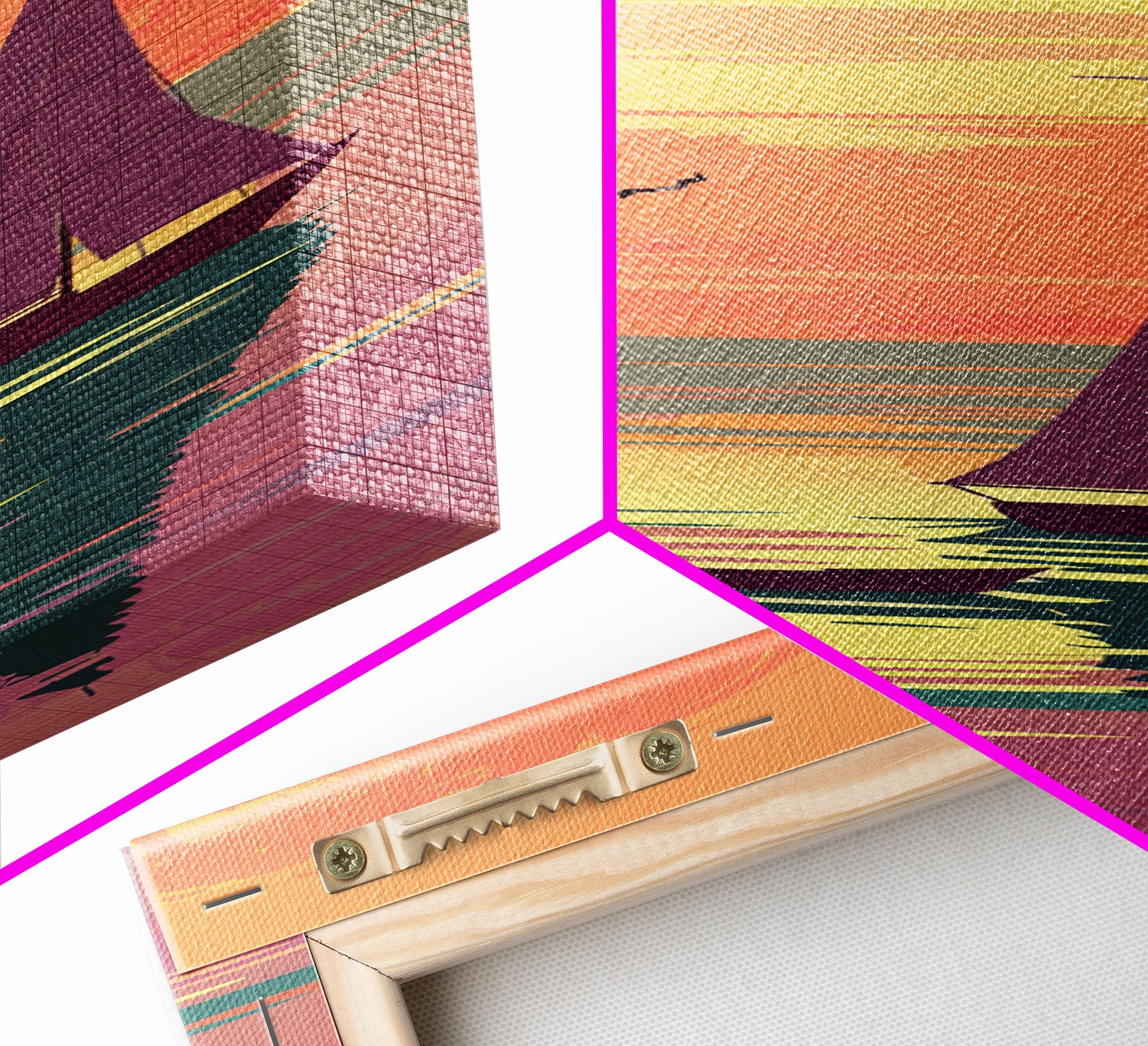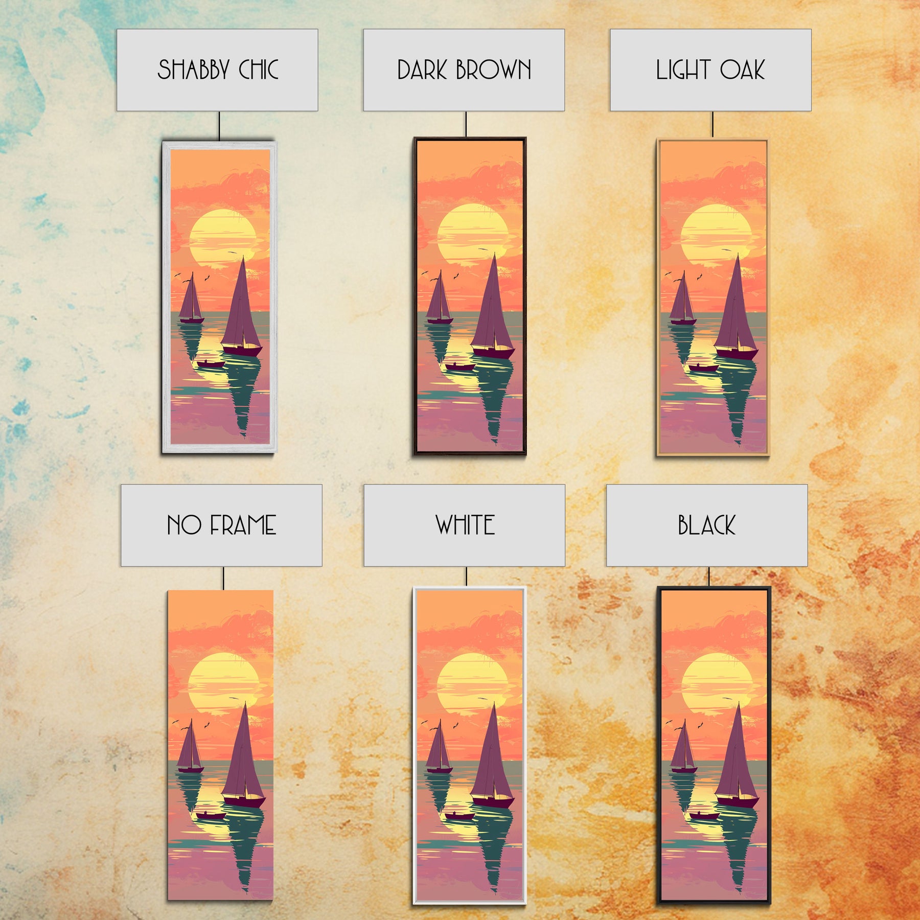 Sailing Boats In The Sunset Over Serene Waters In Japanese Style Ukiyo-e Art Framed Canvas Print Skinny Art Tall Art