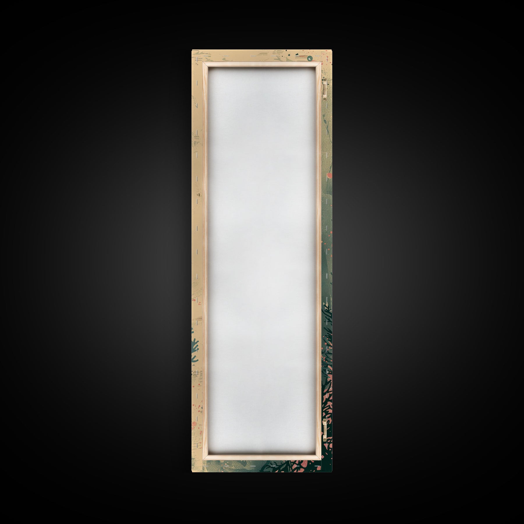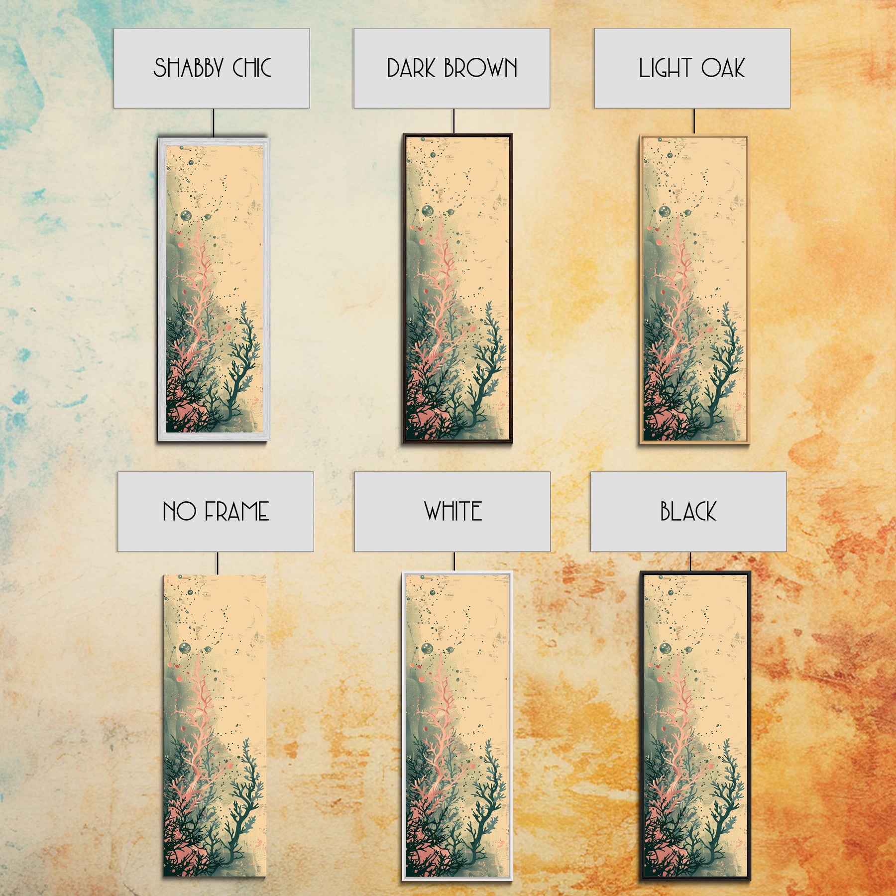Tall Skinny Art Japanese Style Wood Block Print Abstract Seaweed In Soft Hues For Framed Canvas Print In Ukiyo-e Style