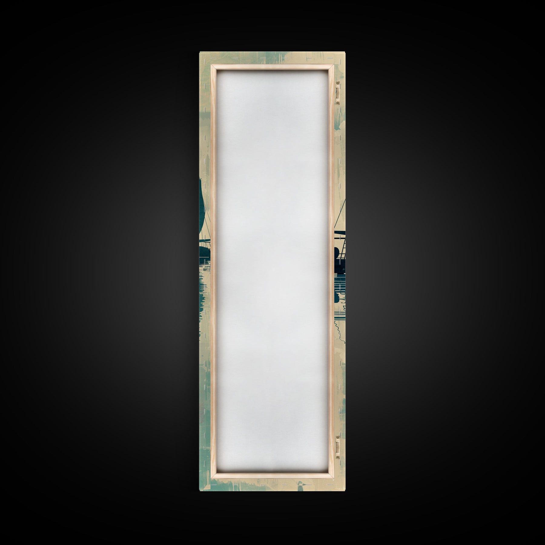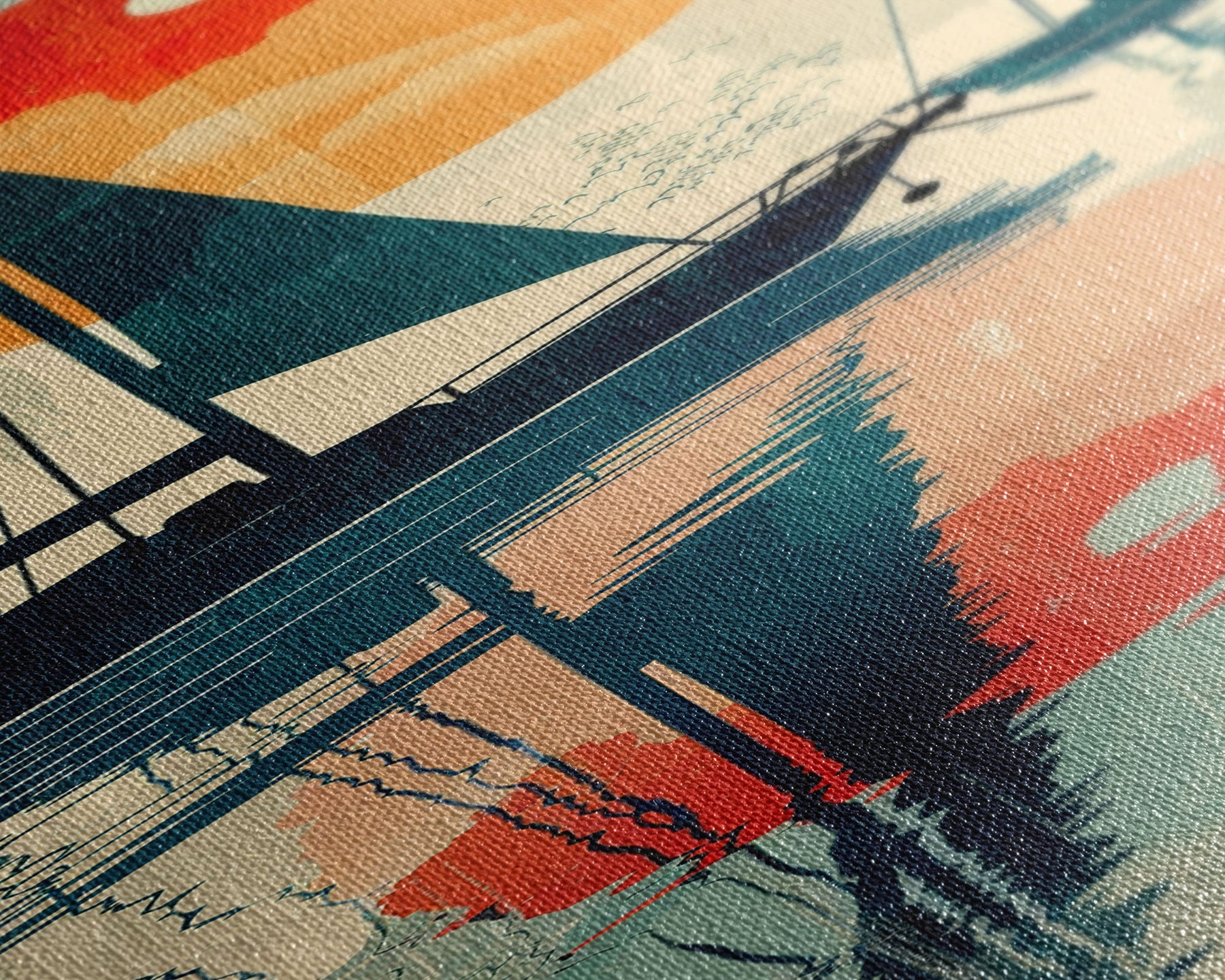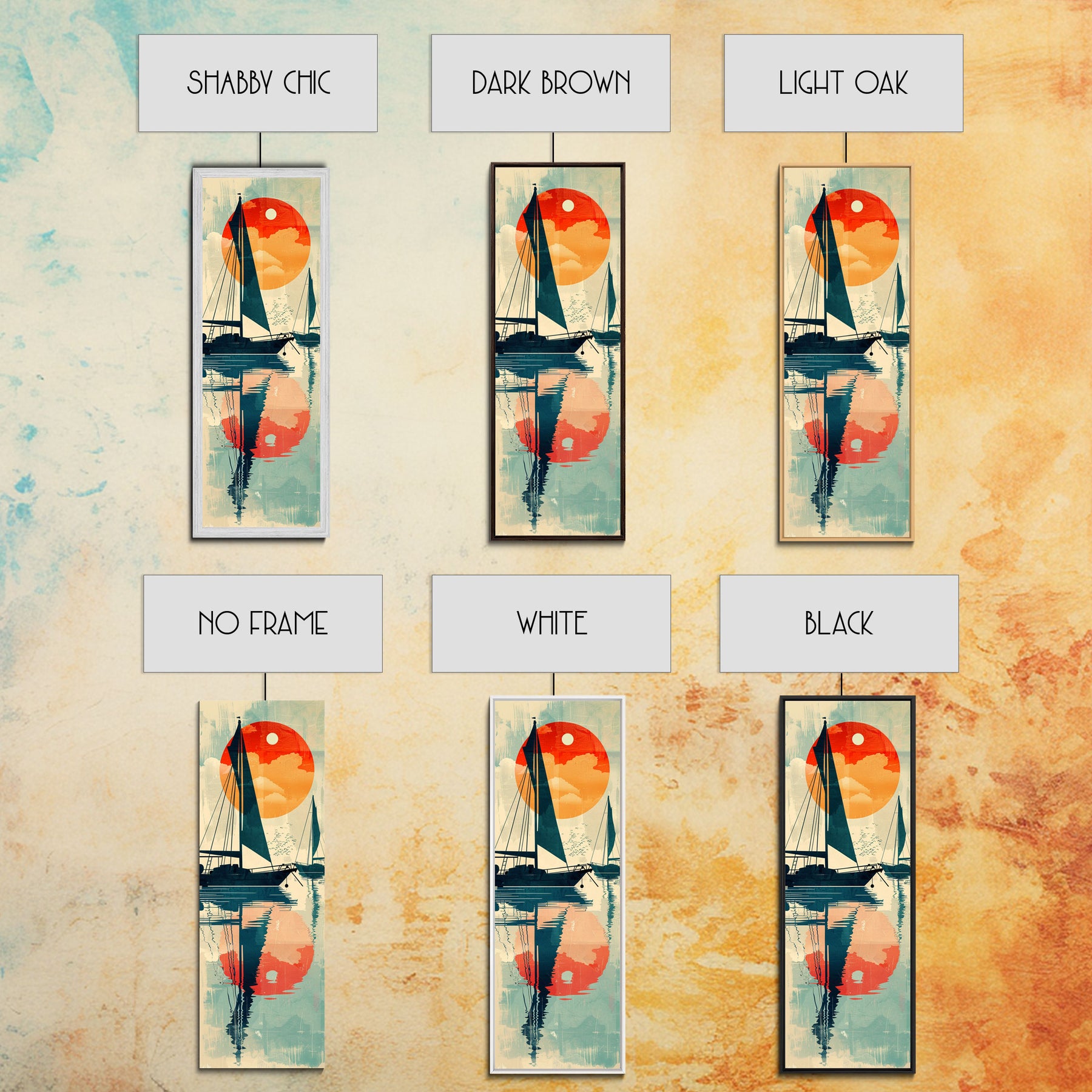 Serene Sunset Sailing Skinny Art Tall Art Japanese Ukiyo-e Inspired Ocean Framed Canvas Print for Home and Office Decor