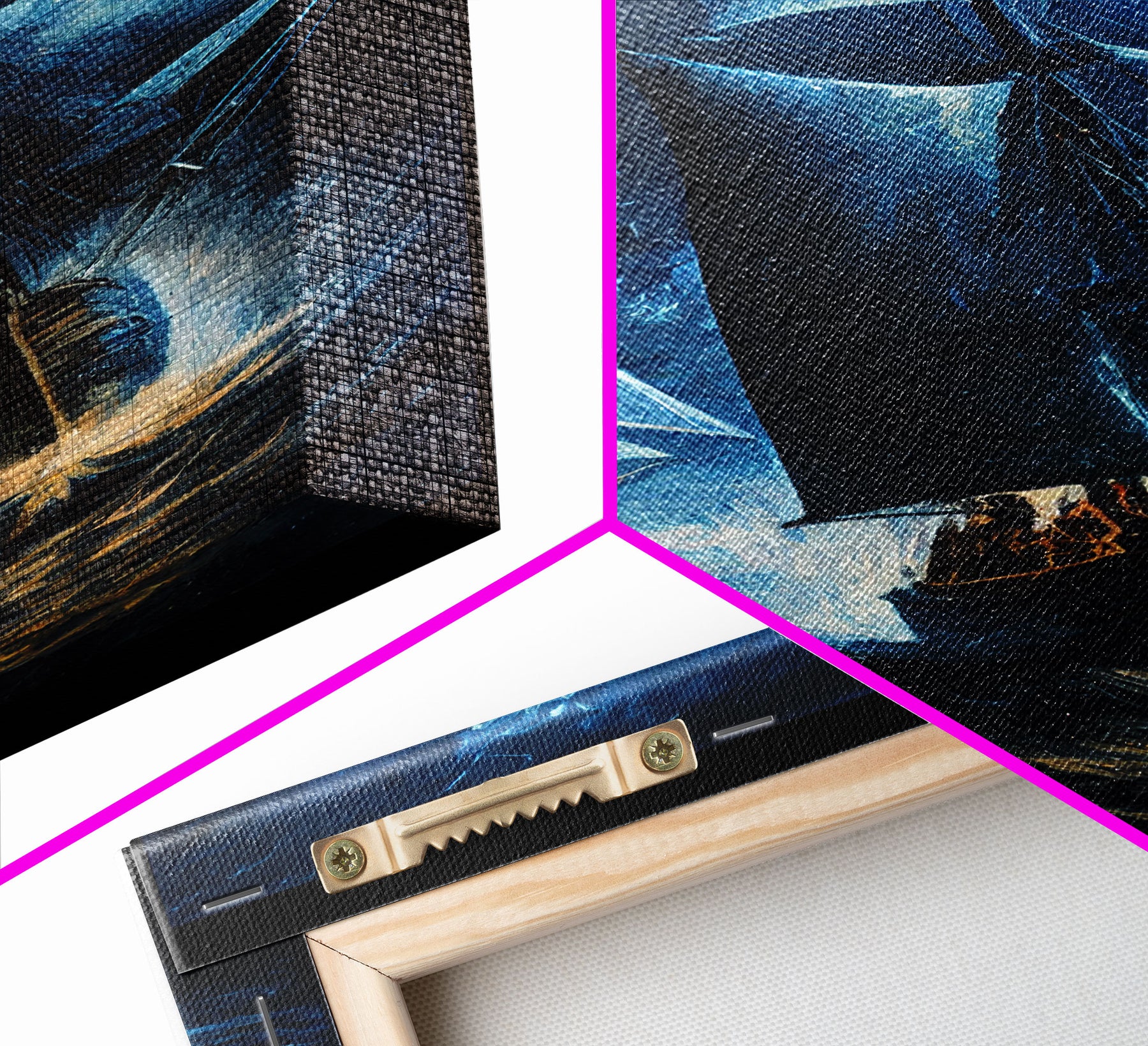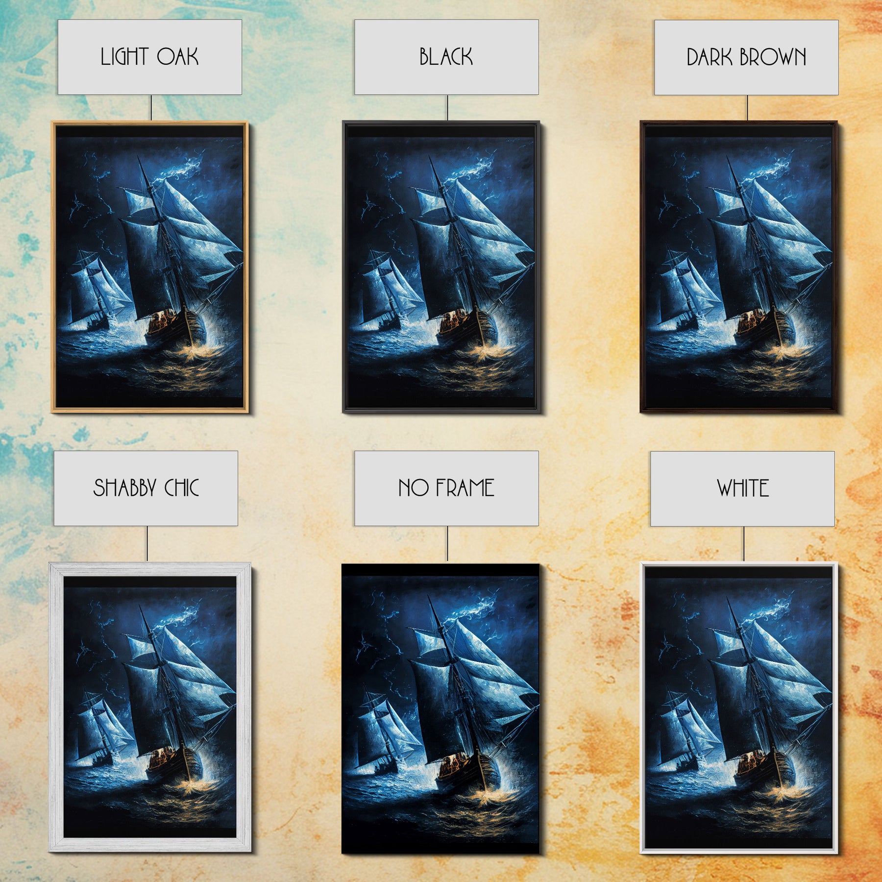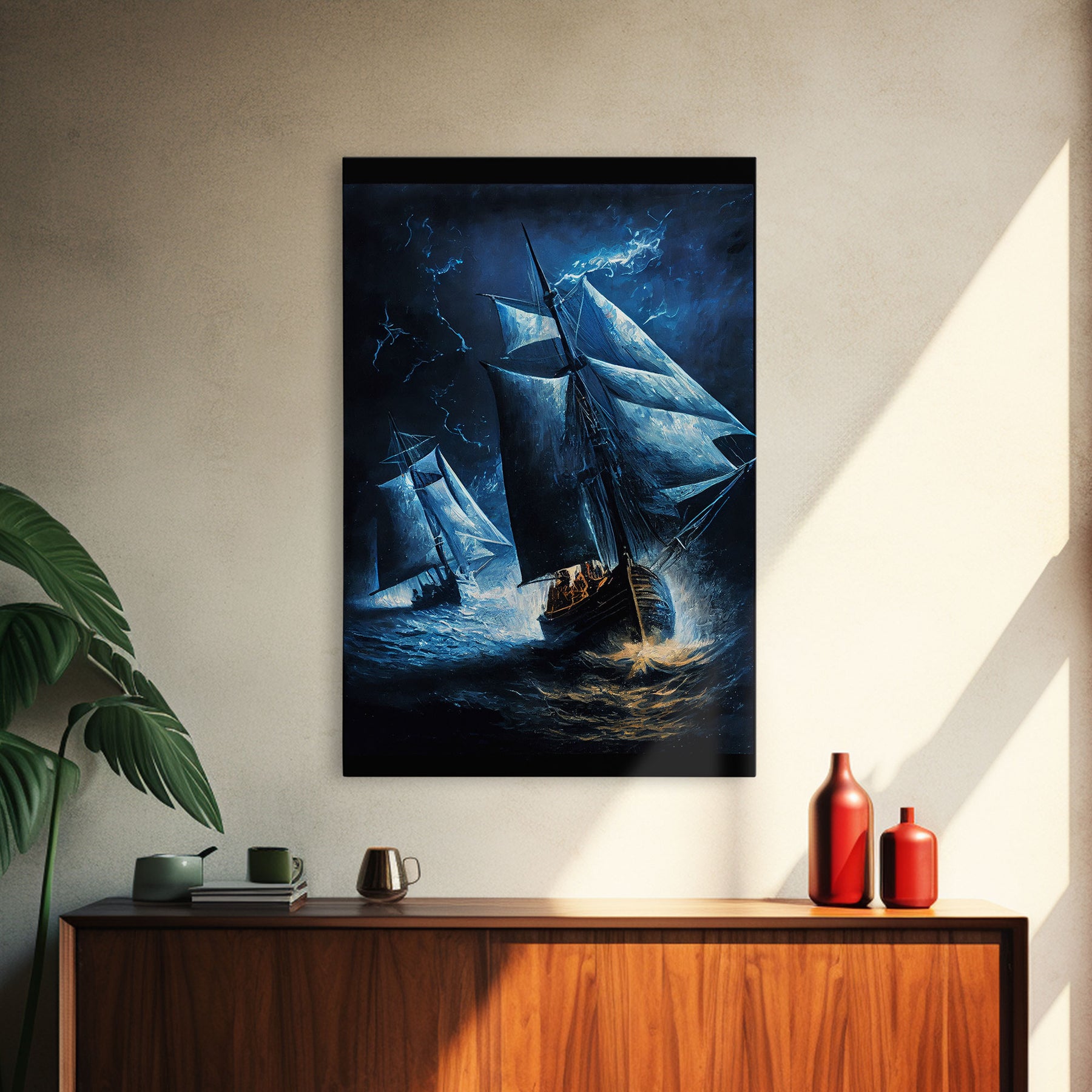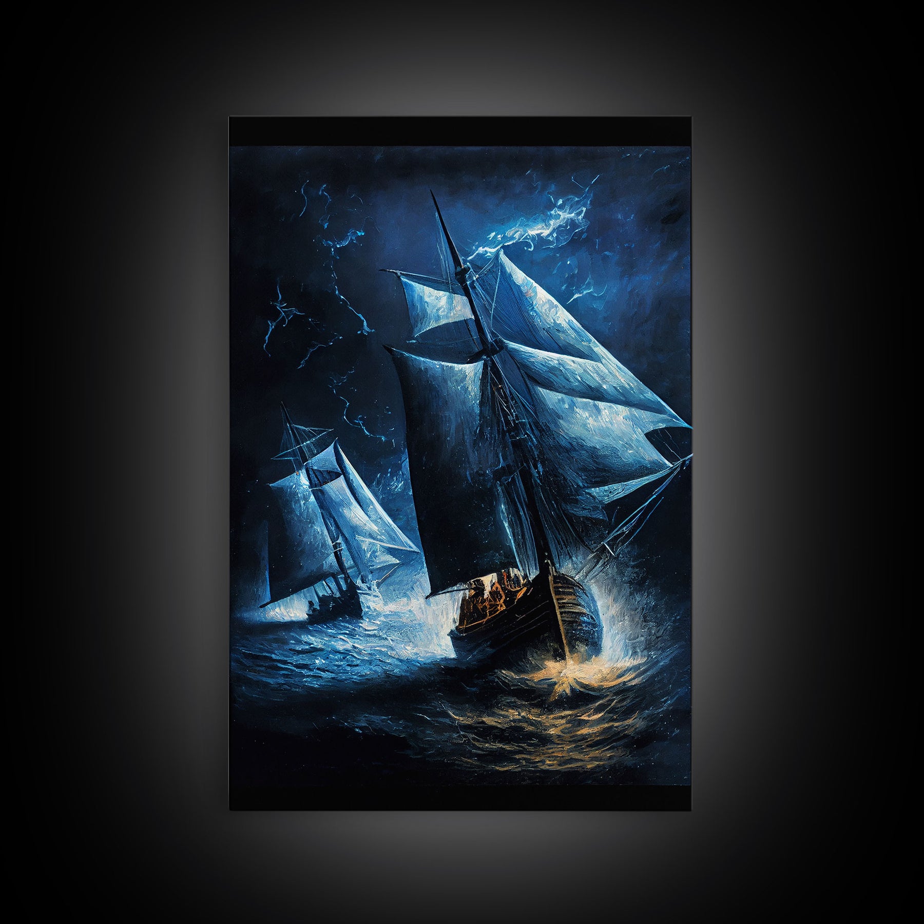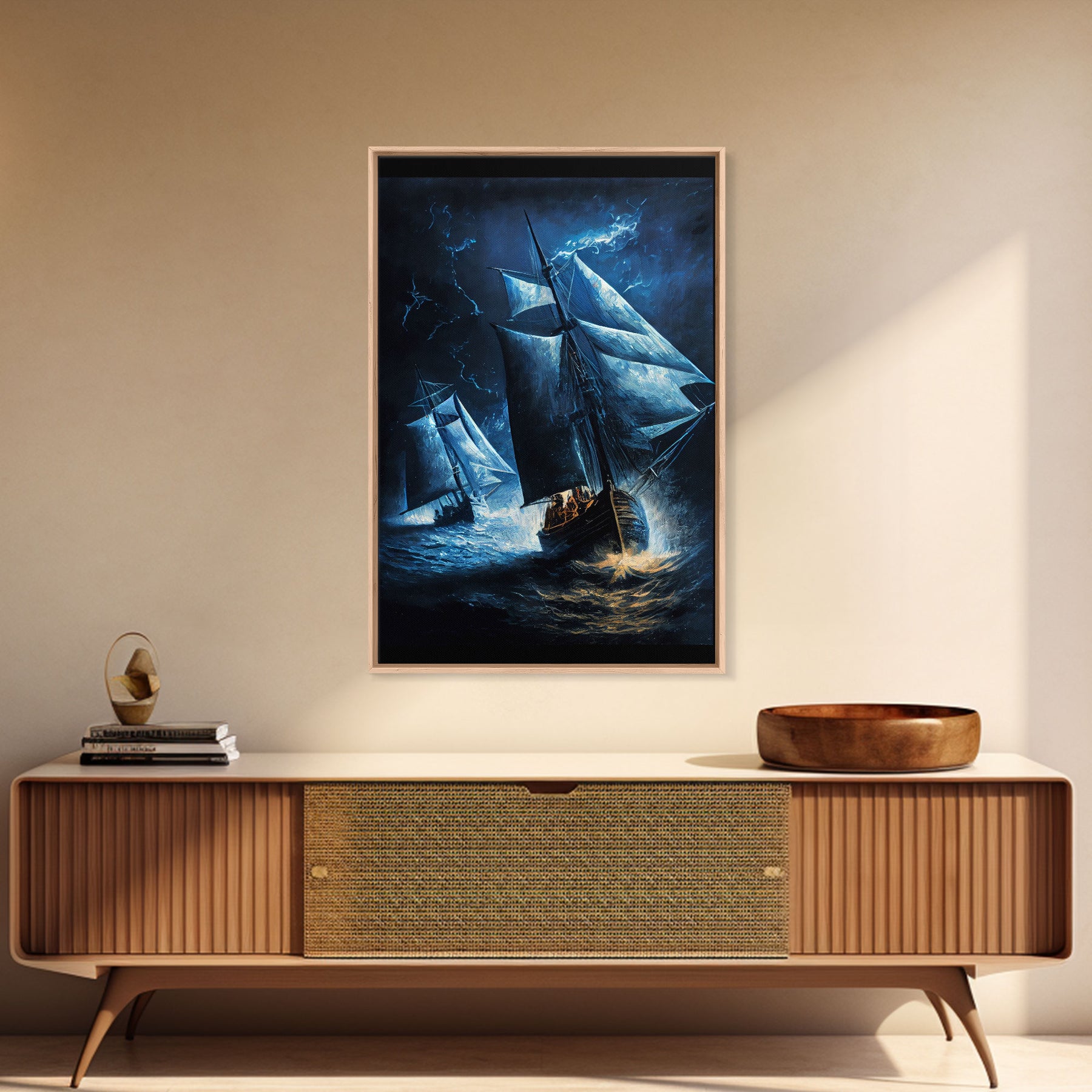 Saiilboats caught in a thunder storm, nautical art, framed canvas print, framed wall art