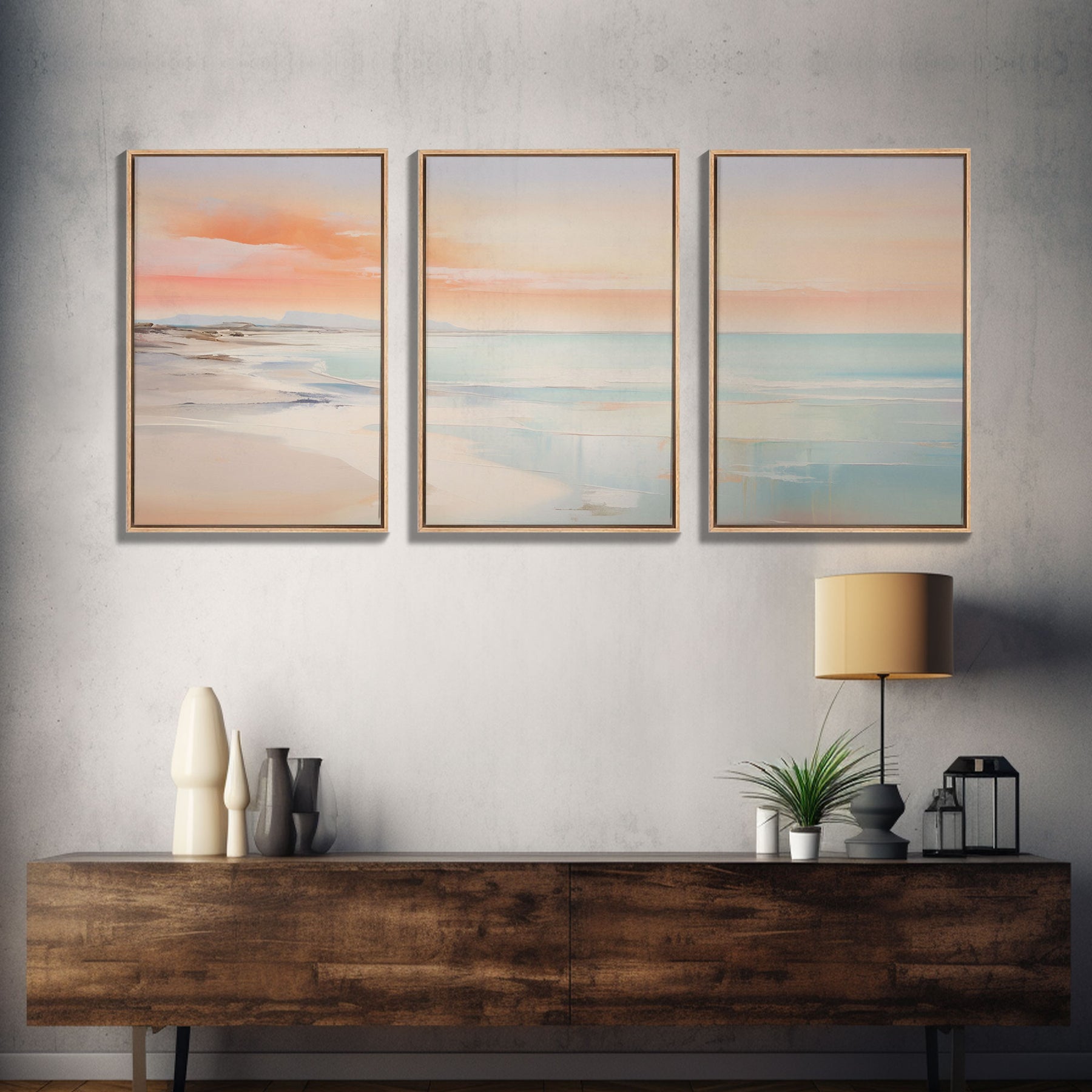 Seascape Print, Beach Wall Art, Patel Room Decor, Canvas Print, Wall Art, 3 Piece Wall Art, Pastel Print, Tiny House Decor, Living Room Art