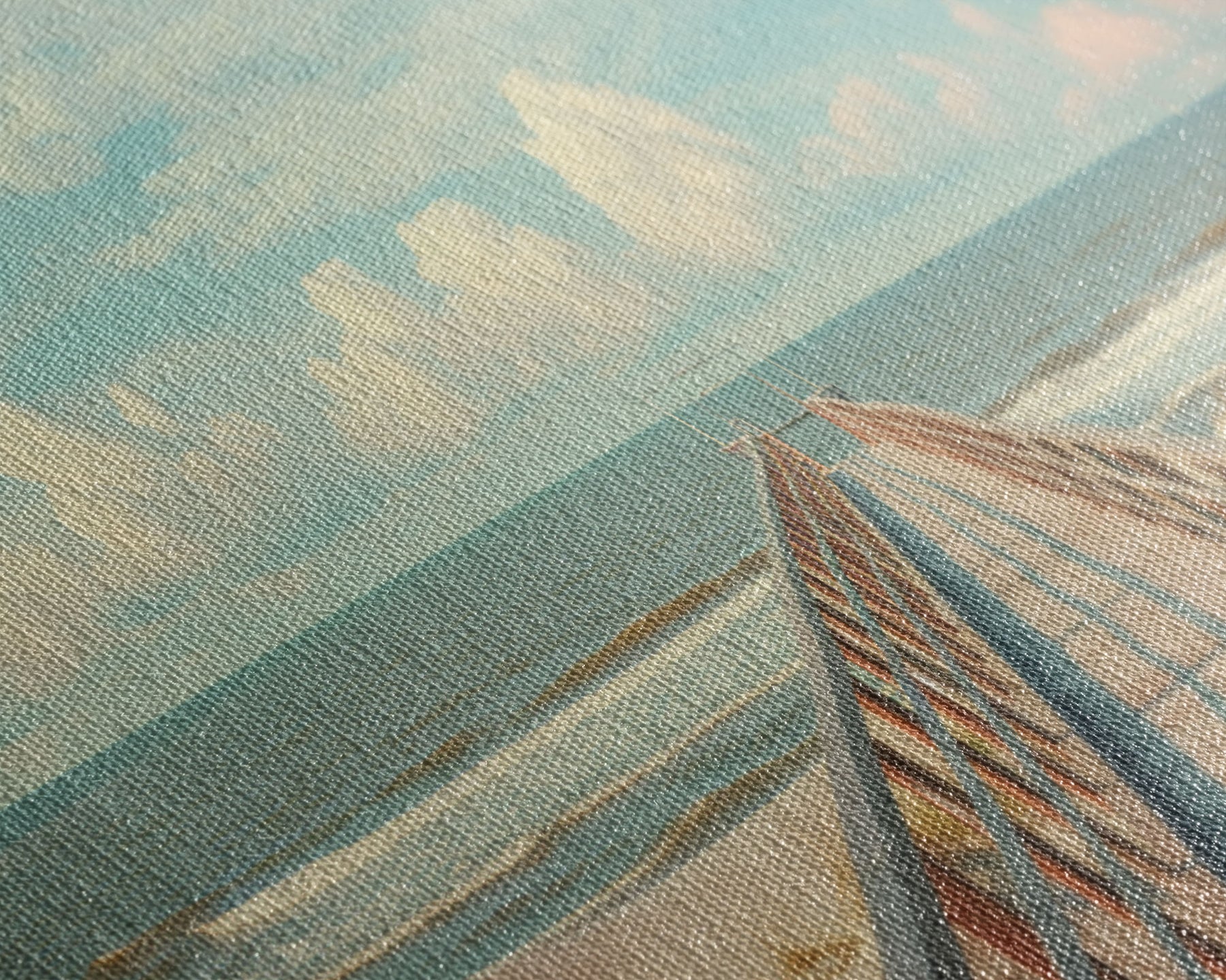 Most of our canvases are made in the USA, with the exception of canvases ordered with the light oak unstained frames, and any large canvases (24x48, 30x60, 16x48 and 20x60) ordered WITH a frame. These are temporarily made in and shipped from Europe, while we try to find a more consistent supplier in the USA.