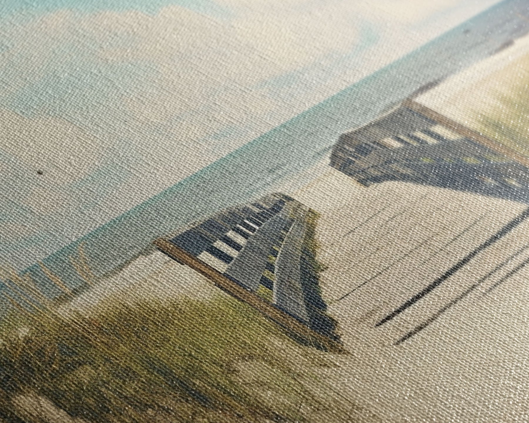 Most of our canvases are made in the USA, with the exception of canvases ordered with the light oak unstained frames, and any large canvases (24x48, 30x60, 16x48 and 20x60) ordered WITH a frame. These are temporarily made in and shipped from Europe, while we try to find a more consistent supplier in the USA.