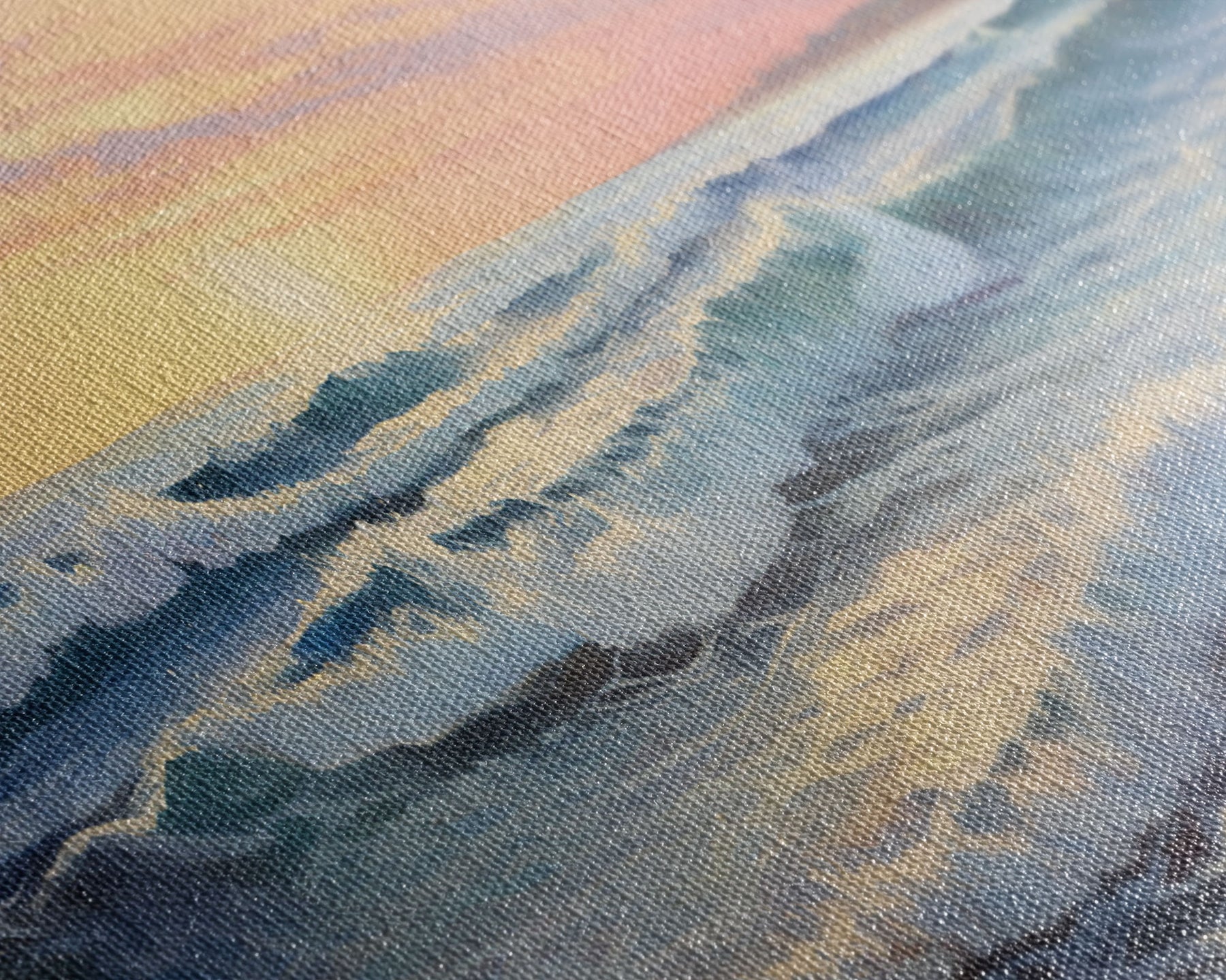 Most of our canvases are made in the USA, with the exception of canvases ordered with the light oak unstained frames, and any large canvases (24x48, 30x60, 16x48 and 20x60) ordered WITH a frame. These are temporarily made in and shipped from Europe, while we try to find a more consistent supplier in the USA.