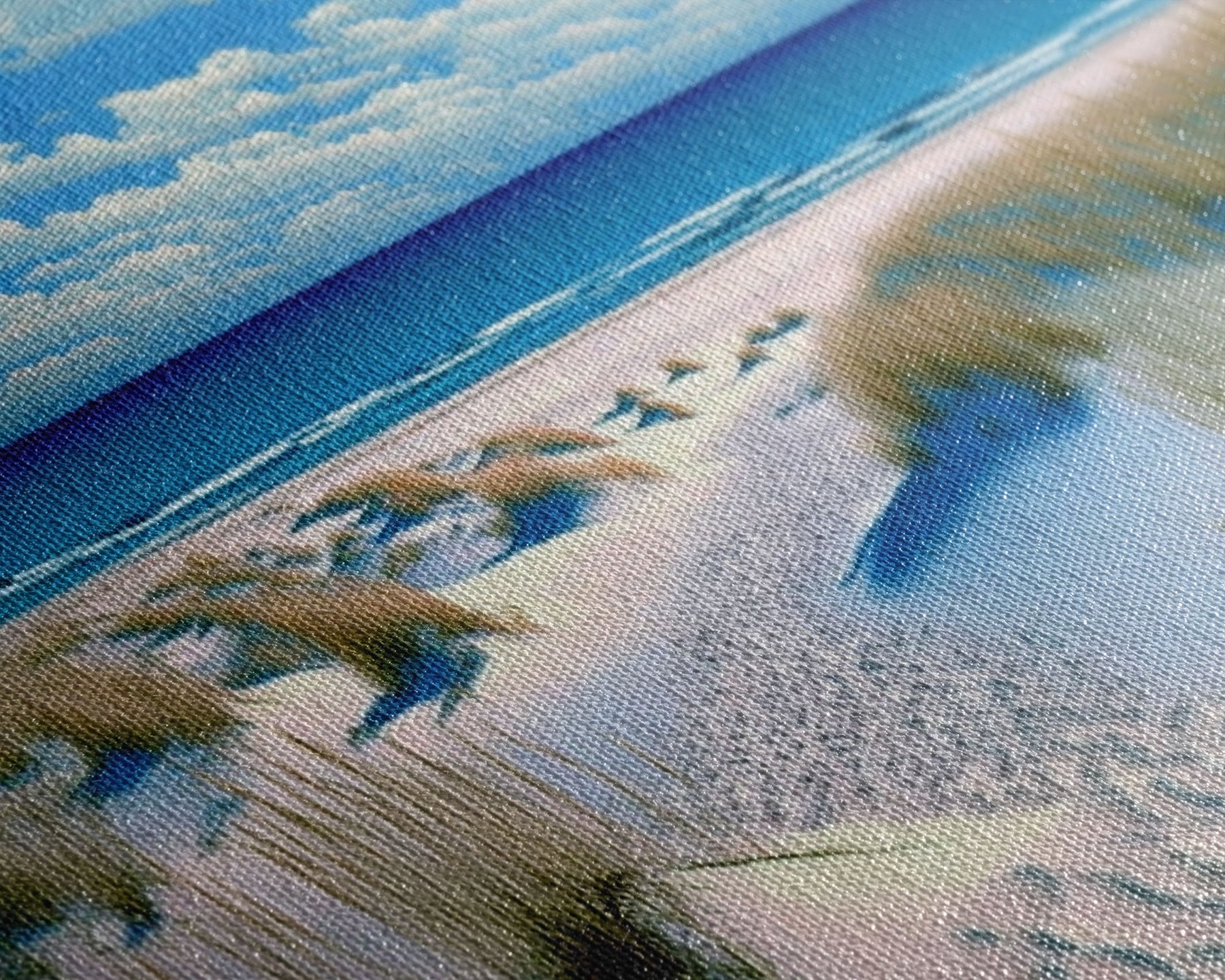 Most of our canvases are made in the USA, with the exception of canvases ordered with the light oak unstained frames, and any large canvases (24x48, 30x60, 16x48 and 20x60) ordered WITH a frame. These are temporarily made in and shipped from Europe, while we try to find a more consistent supplier in the USA.