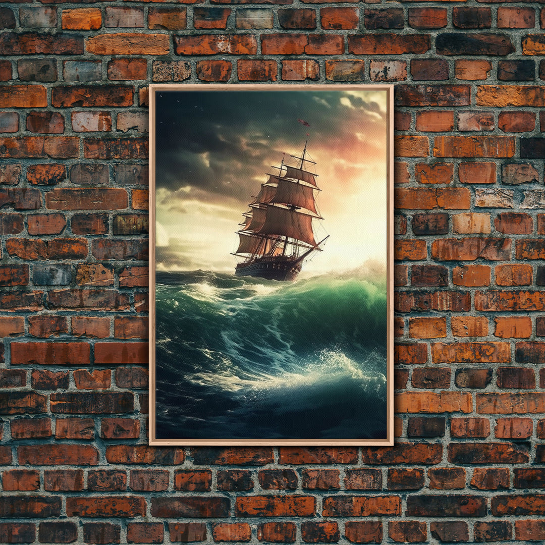 Haunted Pirate Ghost Ship On Rough Seas, Framed Canvas Print, Fantasy Wall Art, Wall Decor, Pirate Wal Art, Gift For Him, Kid's Room
