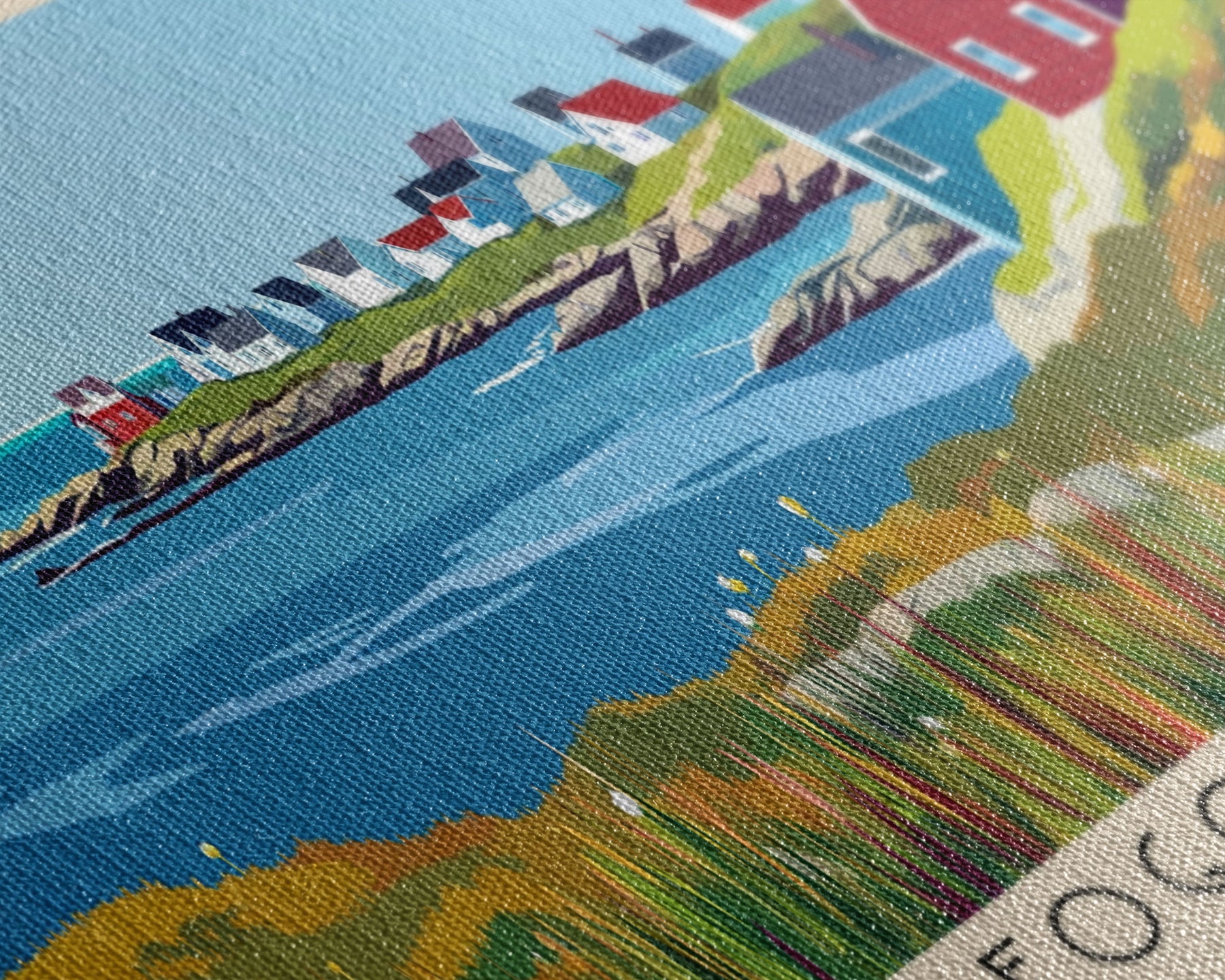 Most of our canvases are made in the USA, with the exception of canvases ordered with the light oak unstained frames, and any large canvases (24x48, 30x60, 16x48 and 20x60) ordered WITH a frame. These are temporarily made in and shipped from Europe, while we try to find a more consistent supplier in the USA.