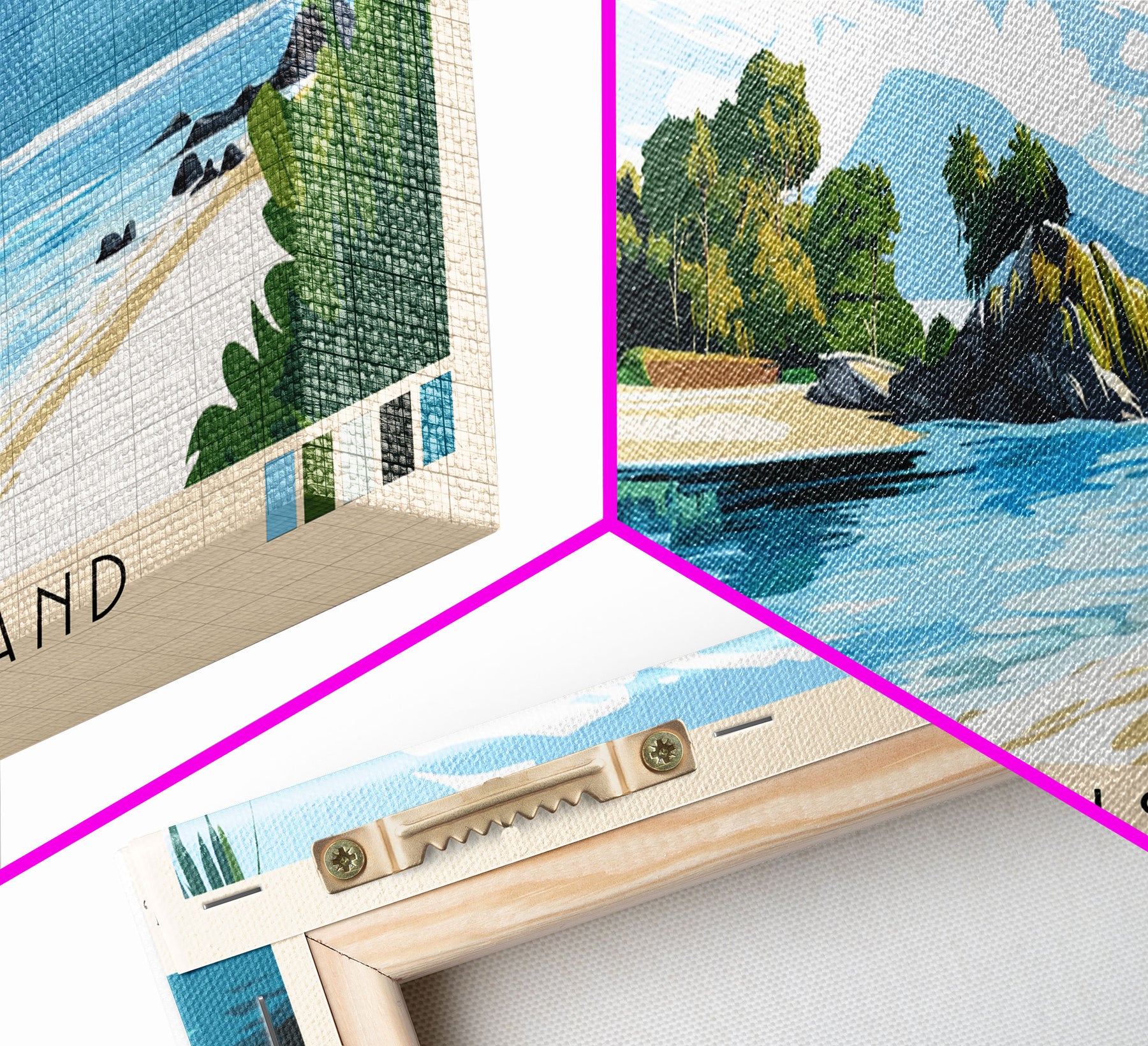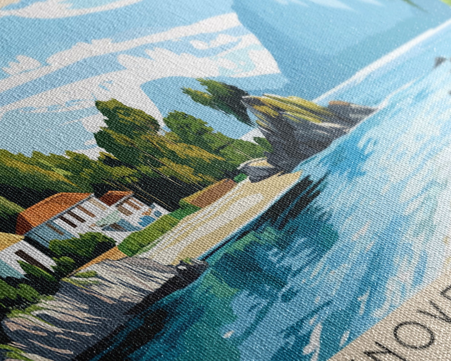 Most of our canvases are made in the USA, with the exception of canvases ordered with the light oak unstained frames, and any large canvases (24x48, 30x60, 16x48 and 20x60) ordered WITH a frame. These are temporarily made in and shipped from Europe, while we try to find a more consistent supplier in the USA.