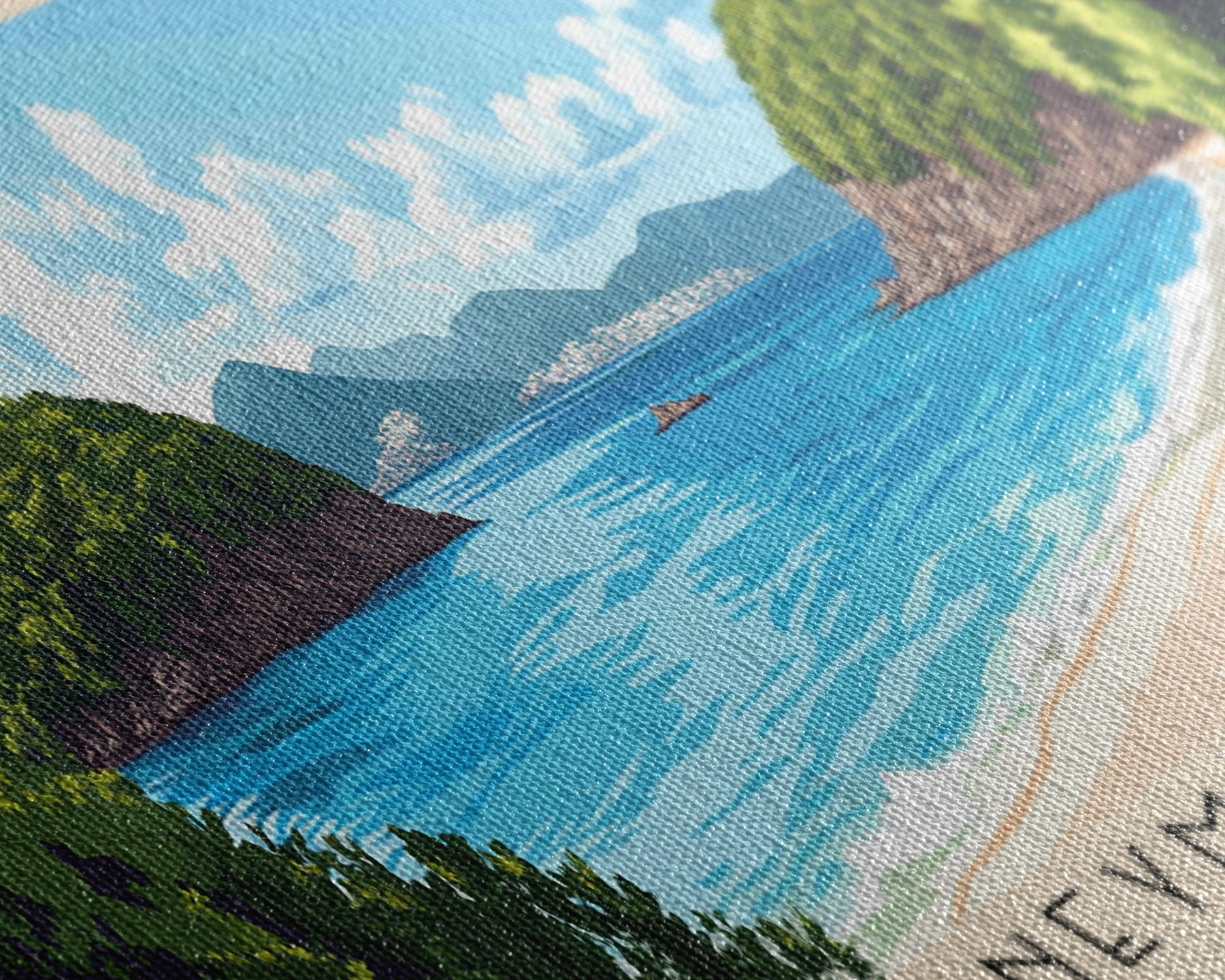Most of our canvases are made in the USA, with the exception of canvases ordered with the light oak unstained frames, and any large canvases (24x48, 30x60, 16x48 and 20x60) ordered WITH a frame. These are temporarily made in and shipped from Europe, while we try to find a more consistent supplier in the USA.