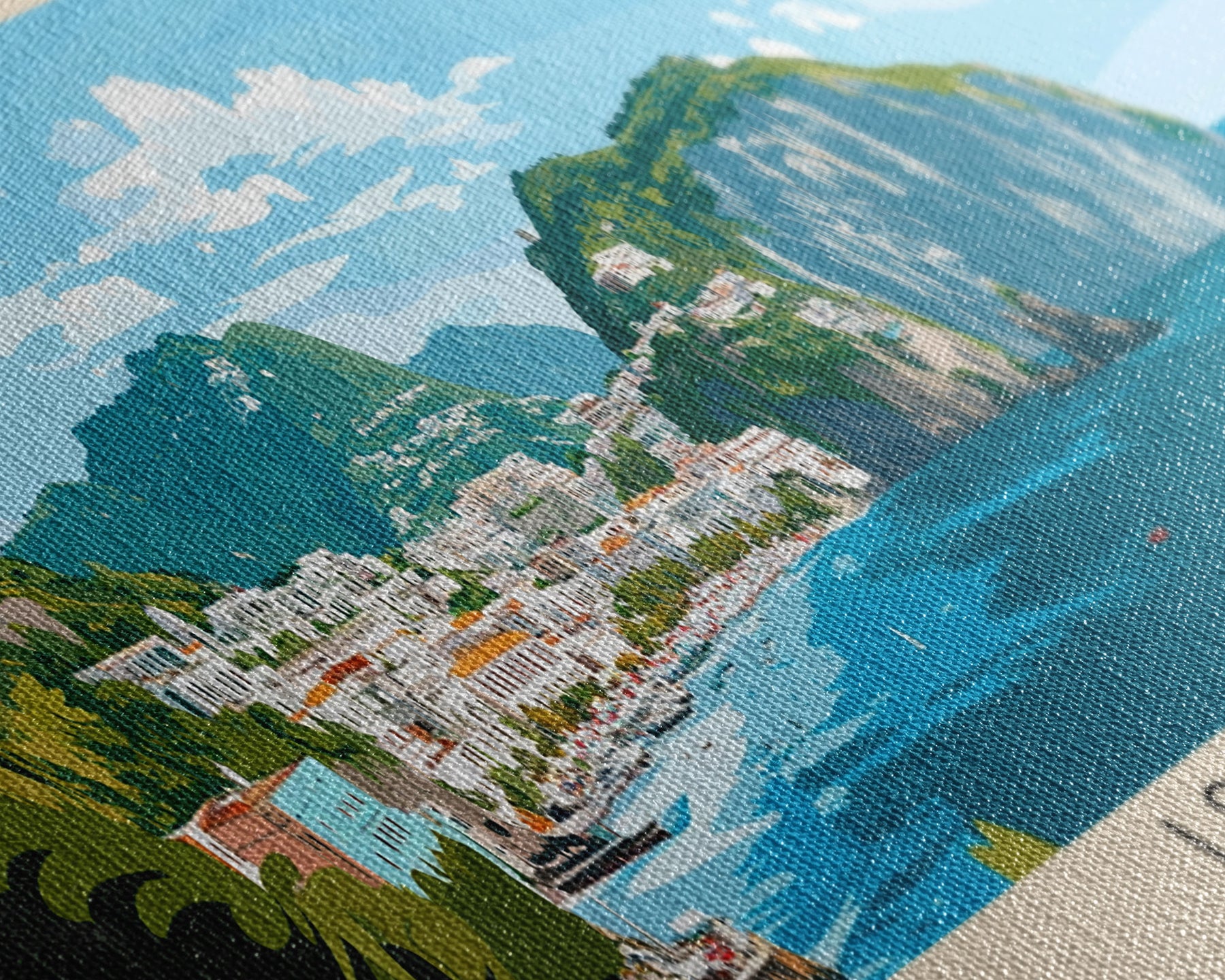 Most of our canvases are made in the USA, with the exception of canvases ordered with the light oak unstained frames, and any large canvases (24x48, 30x60, 16x48 and 20x60) ordered WITH a frame. These are temporarily made in and shipped from Europe, while we try to find a more consistent supplier in the USA.