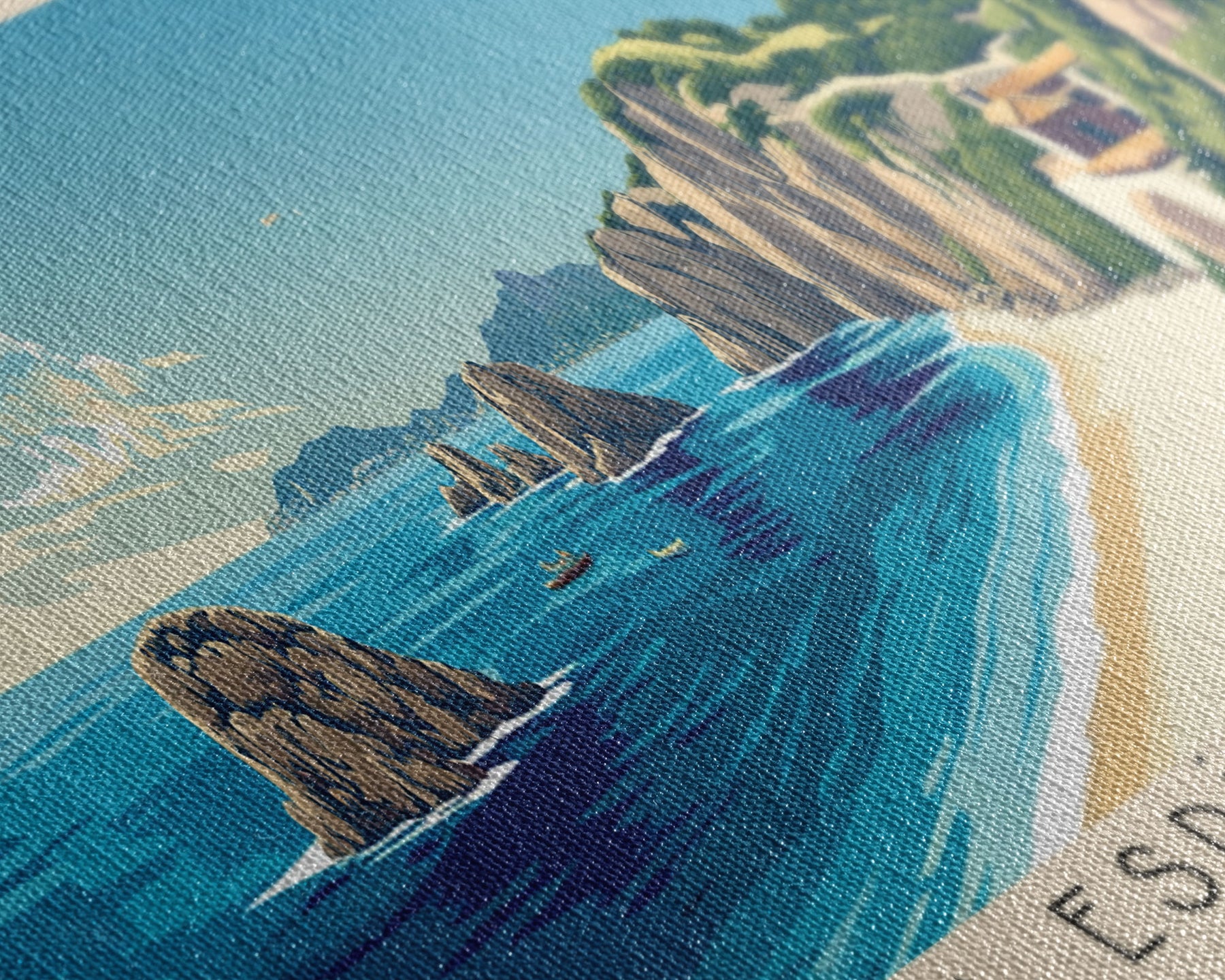 Most of our canvases are made in the USA, with the exception of canvases ordered with the light oak unstained frames, and any large canvases (24x48, 30x60, 16x48 and 20x60) ordered WITH a frame. These are temporarily made in and shipped from Europe, while we try to find a more consistent supplier in the USA.