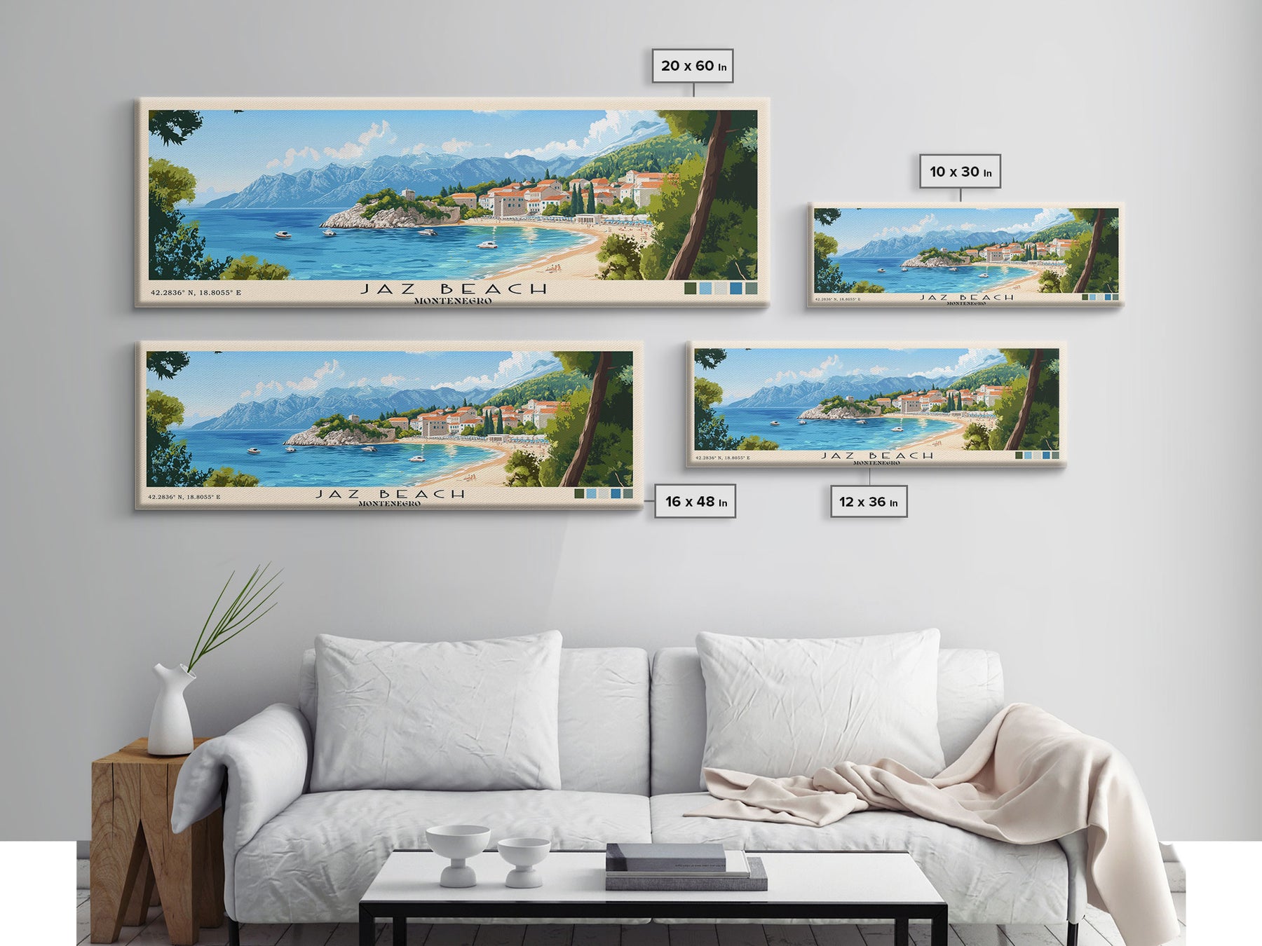 Jaz Beach, Montenegro Panoramic Print, Vacation Gift, Montenegro Wall Art, Beach Painting, Beach Decor, Beach Or Lakehouse Art