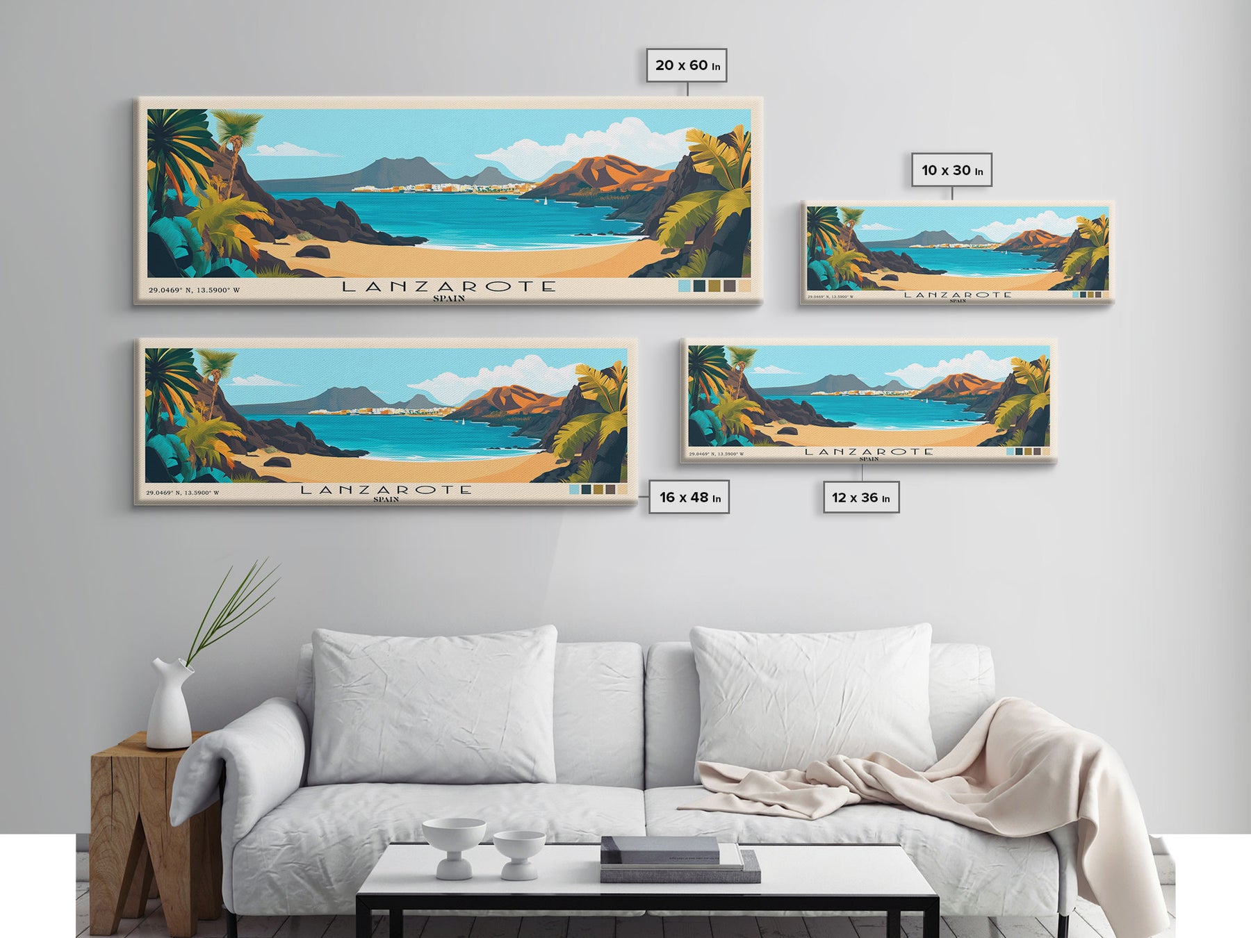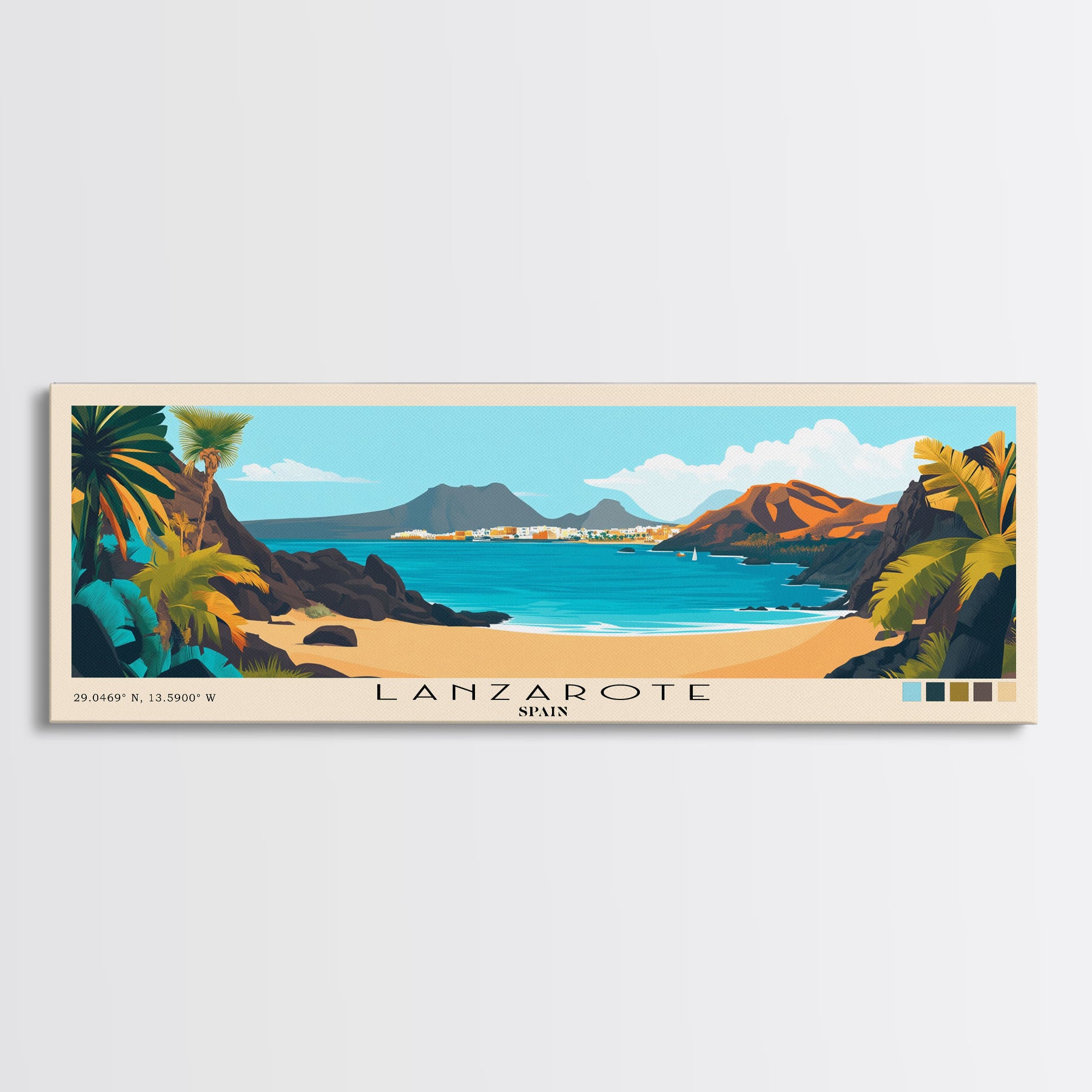 Lanzarote, Spain Panoramic Beach Print, Vacation Gift, Spain Wall Art, Framed Canvas Print, Framed Beach Painting