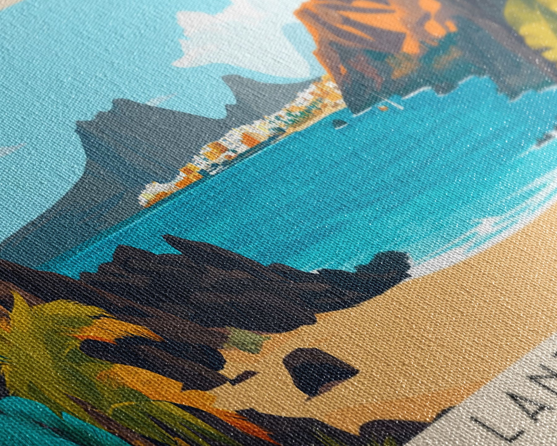Most of our canvases are made in the USA, with the exception of canvases ordered with the light oak unstained frames, and any large canvases (24x48, 30x60, 16x48 and 20x60) ordered WITH a frame. These are temporarily made in and shipped from Europe, while we try to find a more consistent supplier in the USA.