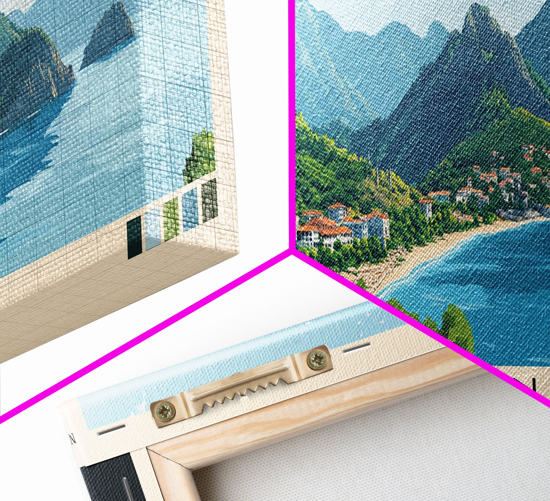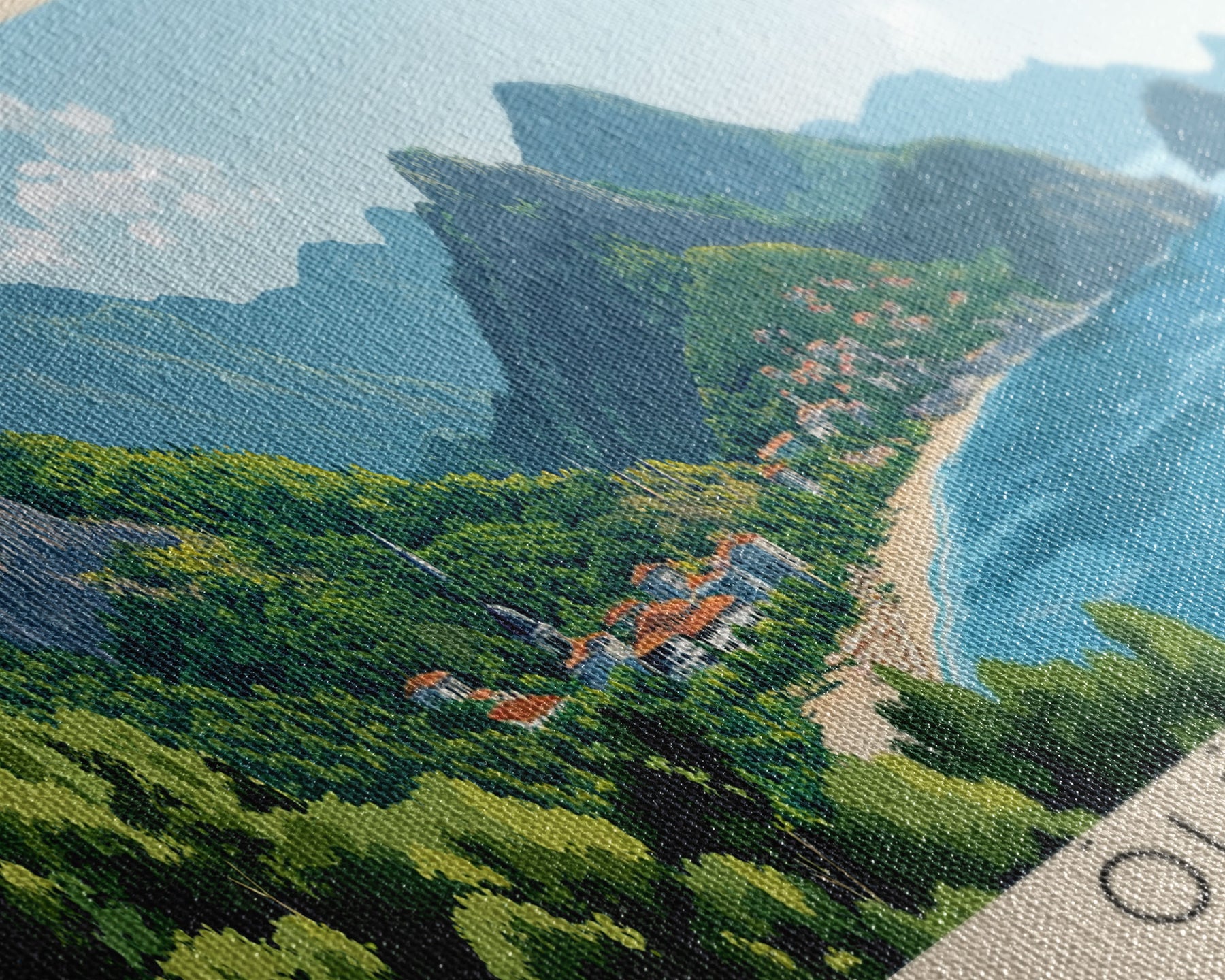 Most of our canvases are made in the USA, with the exception of canvases ordered with the light oak unstained frames, and any large canvases (24x48, 30x60, 16x48 and 20x60) ordered WITH a frame. These are temporarily made in and shipped from Europe, while we try to find a more consistent supplier in the USA.