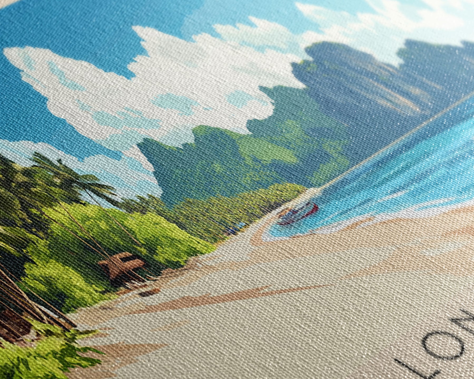 Most of our canvases are made in the USA, with the exception of canvases ordered with the light oak unstained frames, and any large canvases (24x48, 30x60, 16x48 and 20x60) ordered WITH a frame. These are temporarily made in and shipped from Europe, while we try to find a more consistent supplier in the USA.