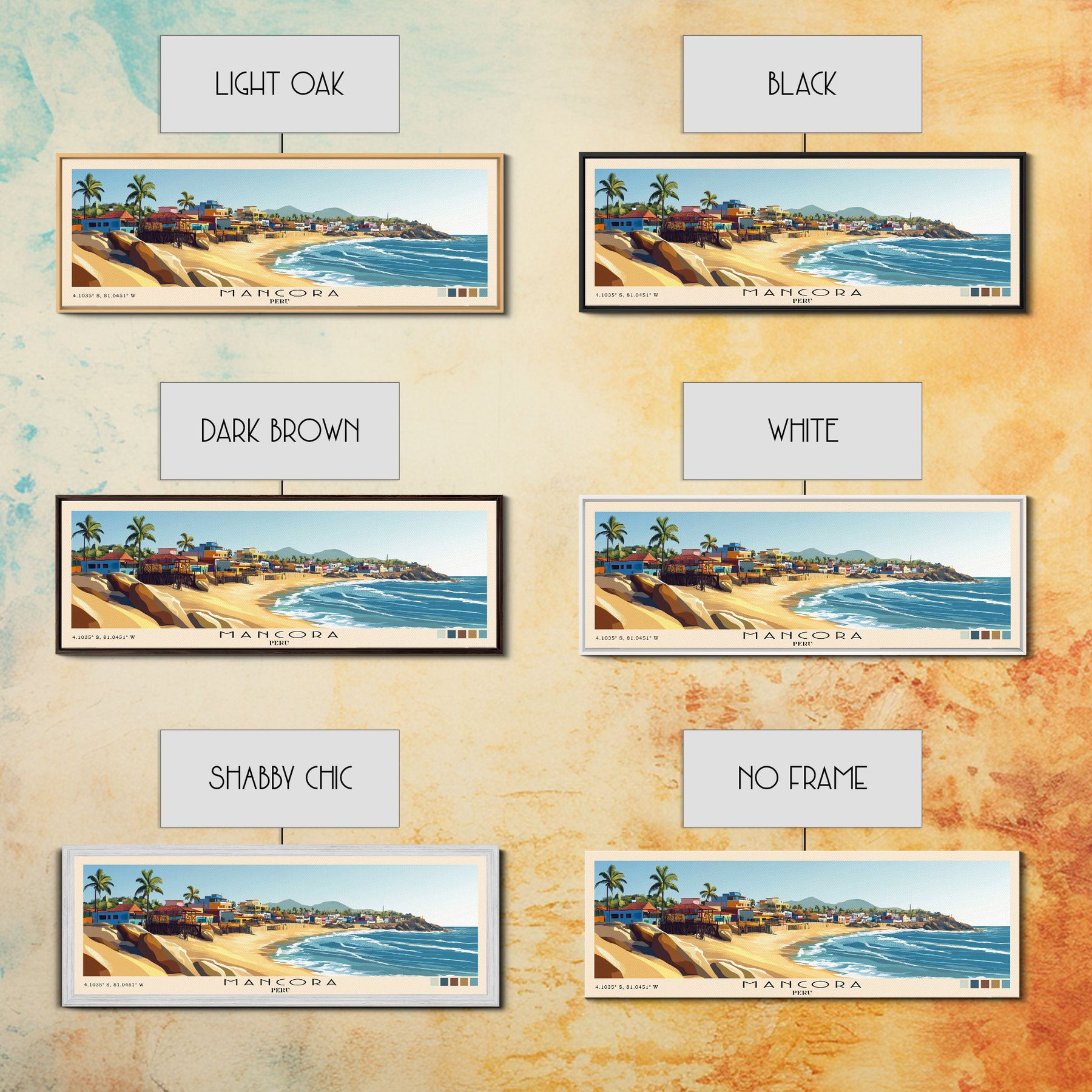 Mancora, Peru Panoramic Beach Print, Vacation Gift, Peru Wall Art, Framed Canvas Print, Framed Beach Painting
