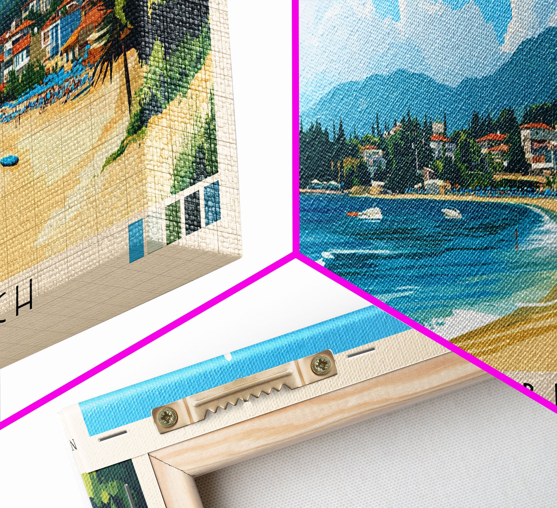 Most of our canvases are made in the USA, with the exception of canvases ordered with the light oak unstained frames, and any large canvases (24x48, 30x60, 16x48 and 20x60) ordered WITH a frame. These are temporarily made in and shipped from Europe, while we try to find a more consistent supplier in the USA.