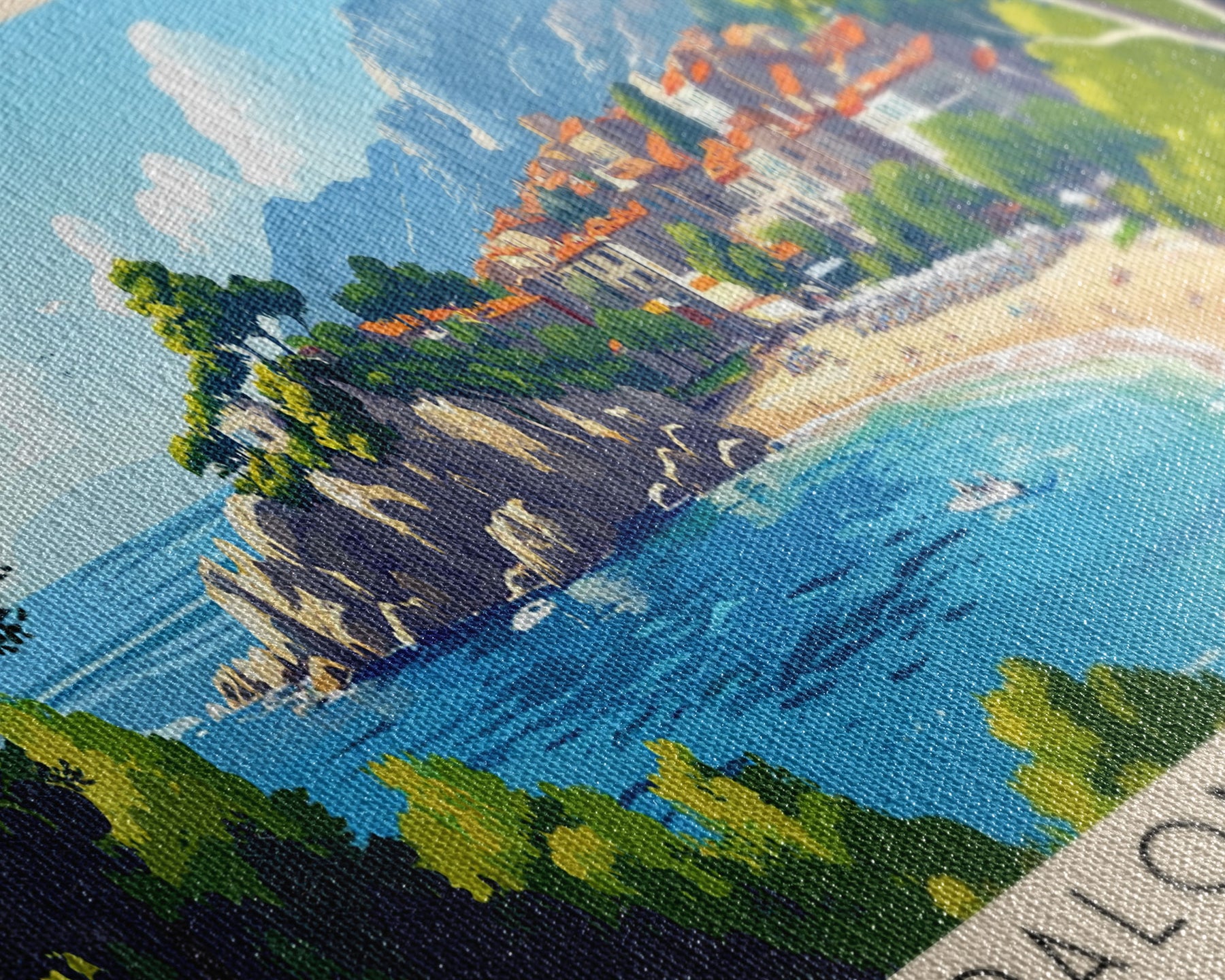 Most of our canvases are made in the USA, with the exception of canvases ordered with the light oak unstained frames, and any large canvases (24x48, 30x60, 16x48 and 20x60) ordered WITH a frame. These are temporarily made in and shipped from Europe, while we try to find a more consistent supplier in the USA.