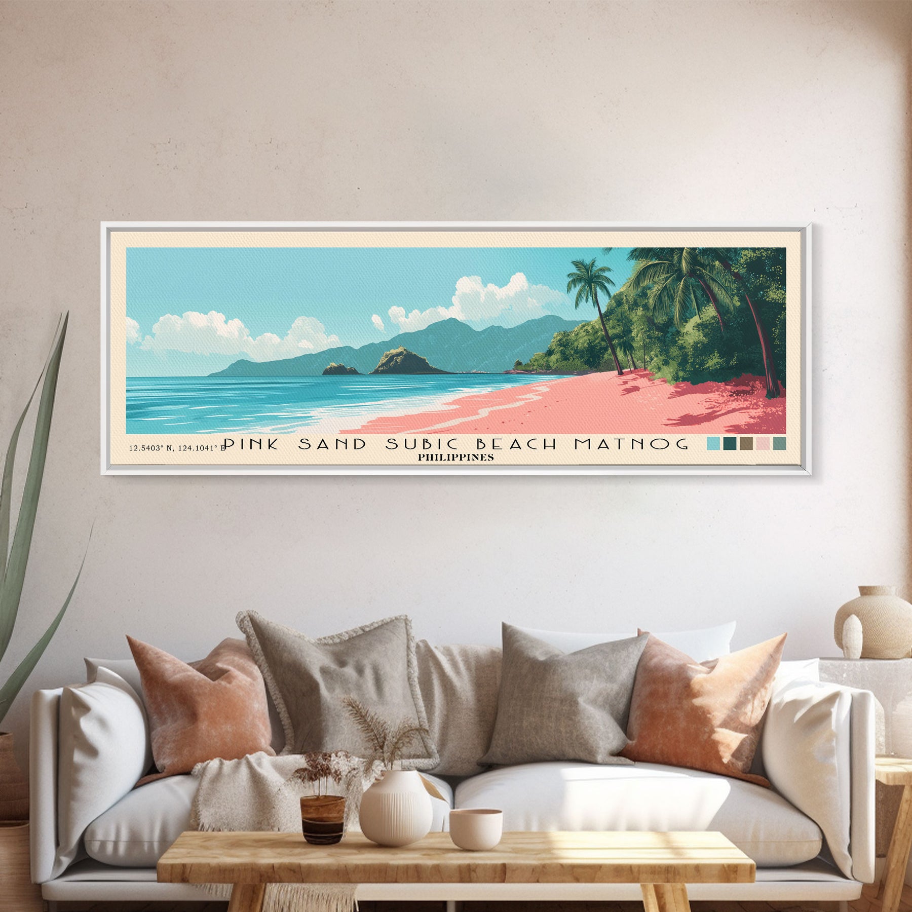Pink sand Subic beach Matnog, Philippines Panoramic Print, Vacation Gift, Philippines Wall Art, Beach Painting, Beach Decor, Beach Or Lakehouse Art