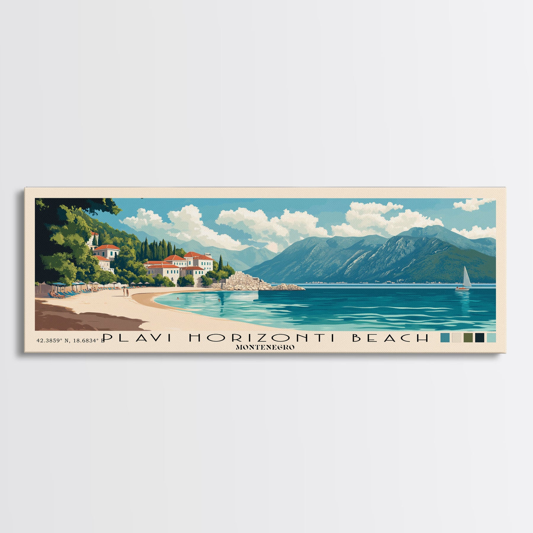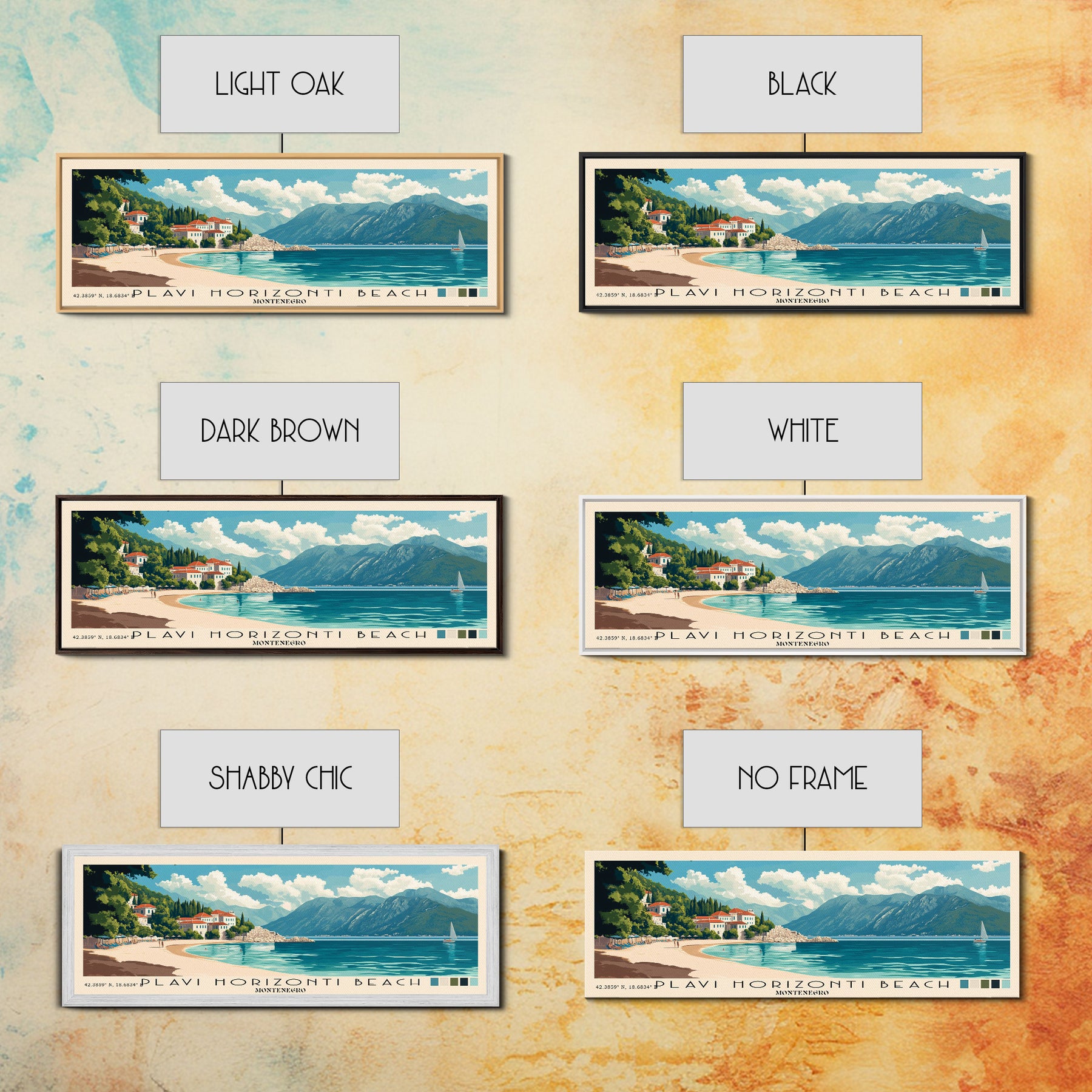 Plavi Horizonti Beach, Montenegro Panoramic Print, Vacation Gift, Montenegro Wall Art, Beach Painting, Beach Decor, Large Wall Art, Wood Frame Art