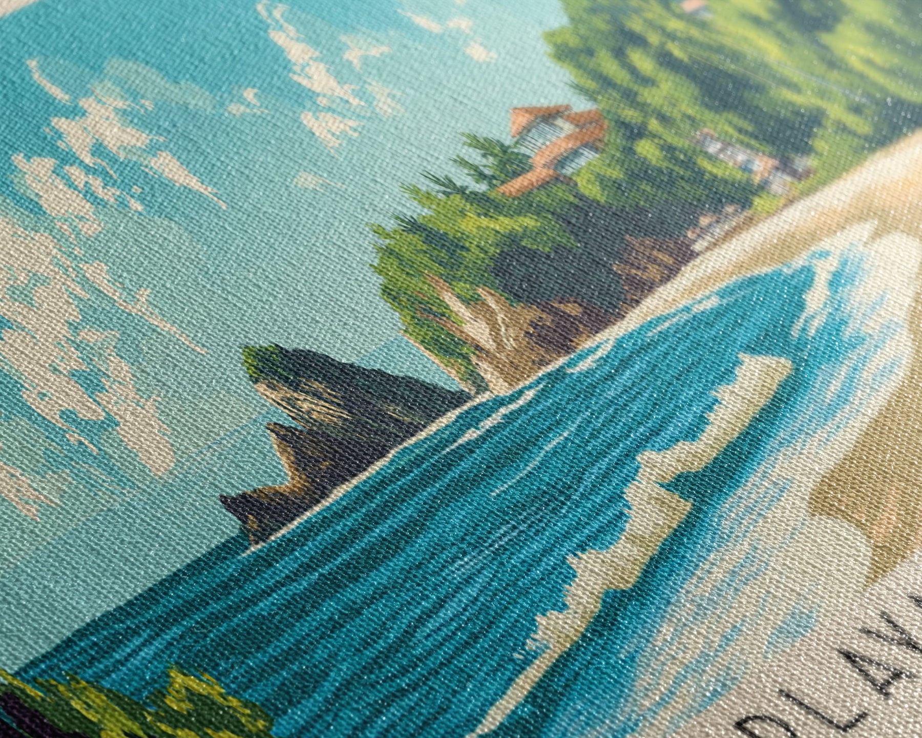 Most of our canvases are made in the USA, with the exception of canvases ordered with the light oak unstained frames, and any large canvases (24x48, 30x60, 16x48 and 20x60) ordered WITH a frame. These are temporarily made in and shipped from Europe, while we try to find a more consistent supplier in the USA.