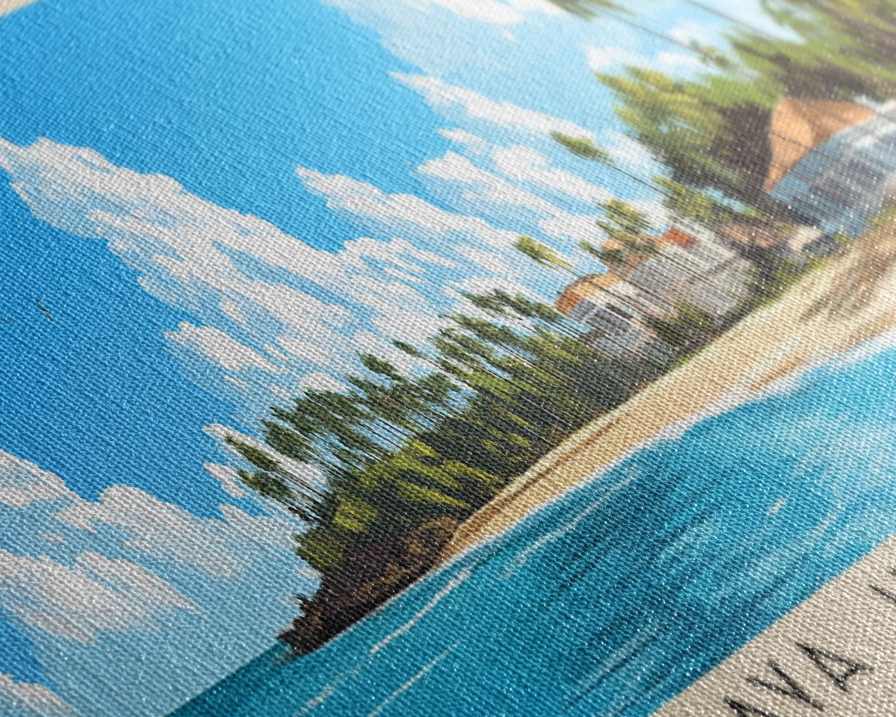 Most of our canvases are made in the USA, with the exception of canvases ordered with the light oak unstained frames, and any large canvases (24x48, 30x60, 16x48 and 20x60) ordered WITH a frame. These are temporarily made in and shipped from Europe, while we try to find a more consistent supplier in the USA.