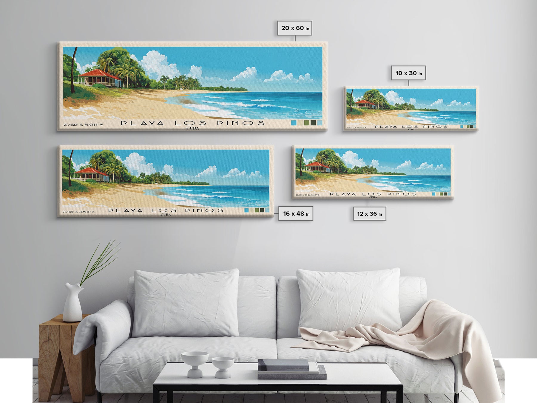 Playa Los Pinos, Cuba Panoramic Print, Vacation Gift, Cuba Wall Art, Beach Painting, Beach Decor, Beach Or Lakehouse Art