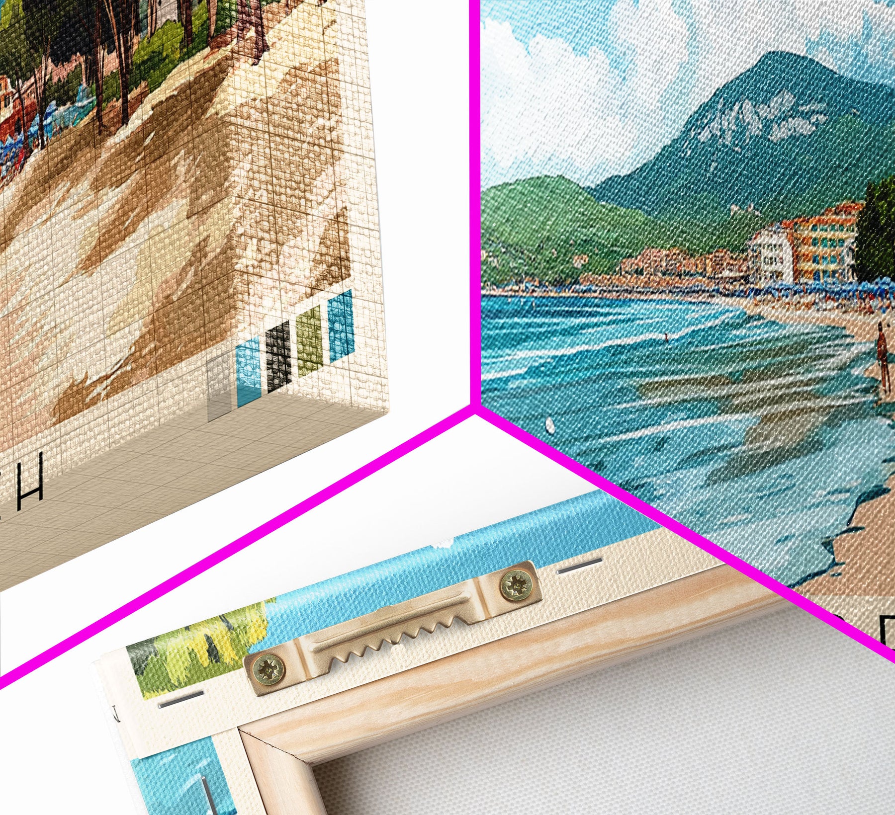Most of our canvases are made in the USA, with the exception of canvases ordered with the light oak unstained frames, and any large canvases (24x48, 30x60, 16x48 and 20x60) ordered WITH a frame. These are temporarily made in and shipped from Europe, while we try to find a more consistent supplier in the USA.