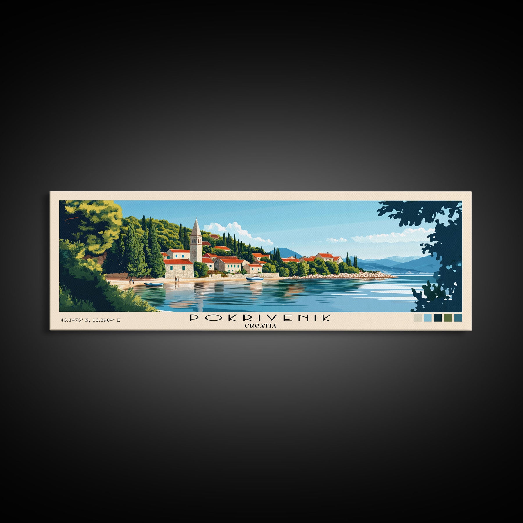 Pokrivenik, Croatia Panoramic Print, Vacation Gift, Croatia Wall Art, Beach Painting, Beach Decor, Beach Or Lakehouse Art