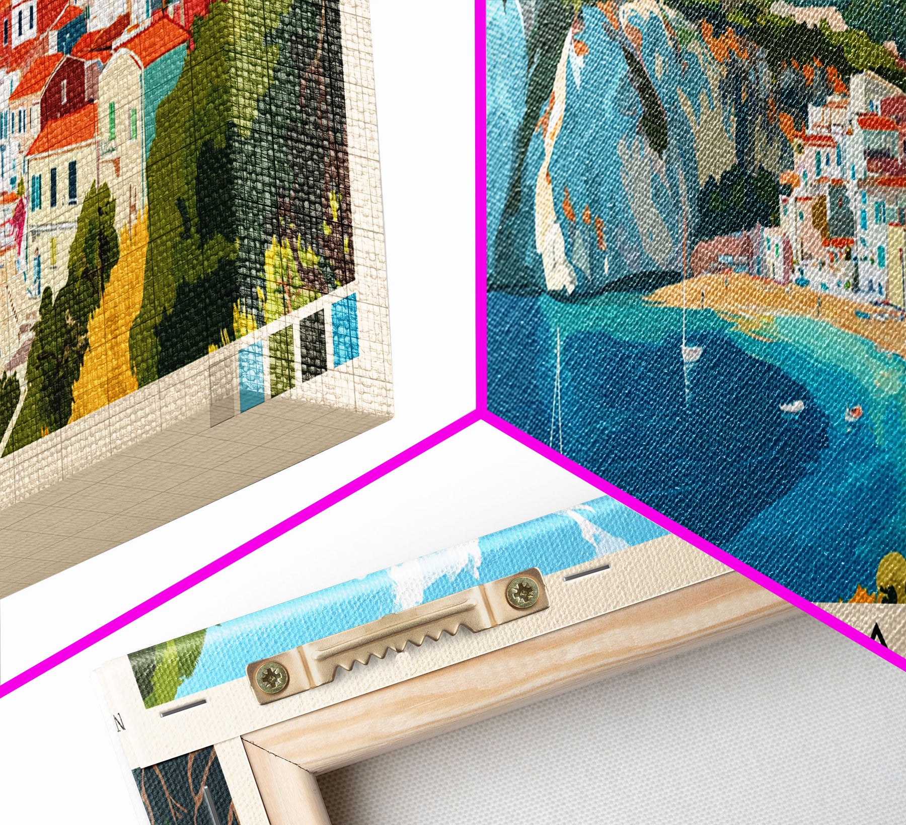 Most of our canvases are made in the USA, with the exception of canvases ordered with the light oak unstained frames, and any large canvases (24x48, 30x60, 16x48 and 20x60) ordered WITH a frame. These are temporarily made in and shipped from Europe, while we try to find a more consistent supplier in the USA.