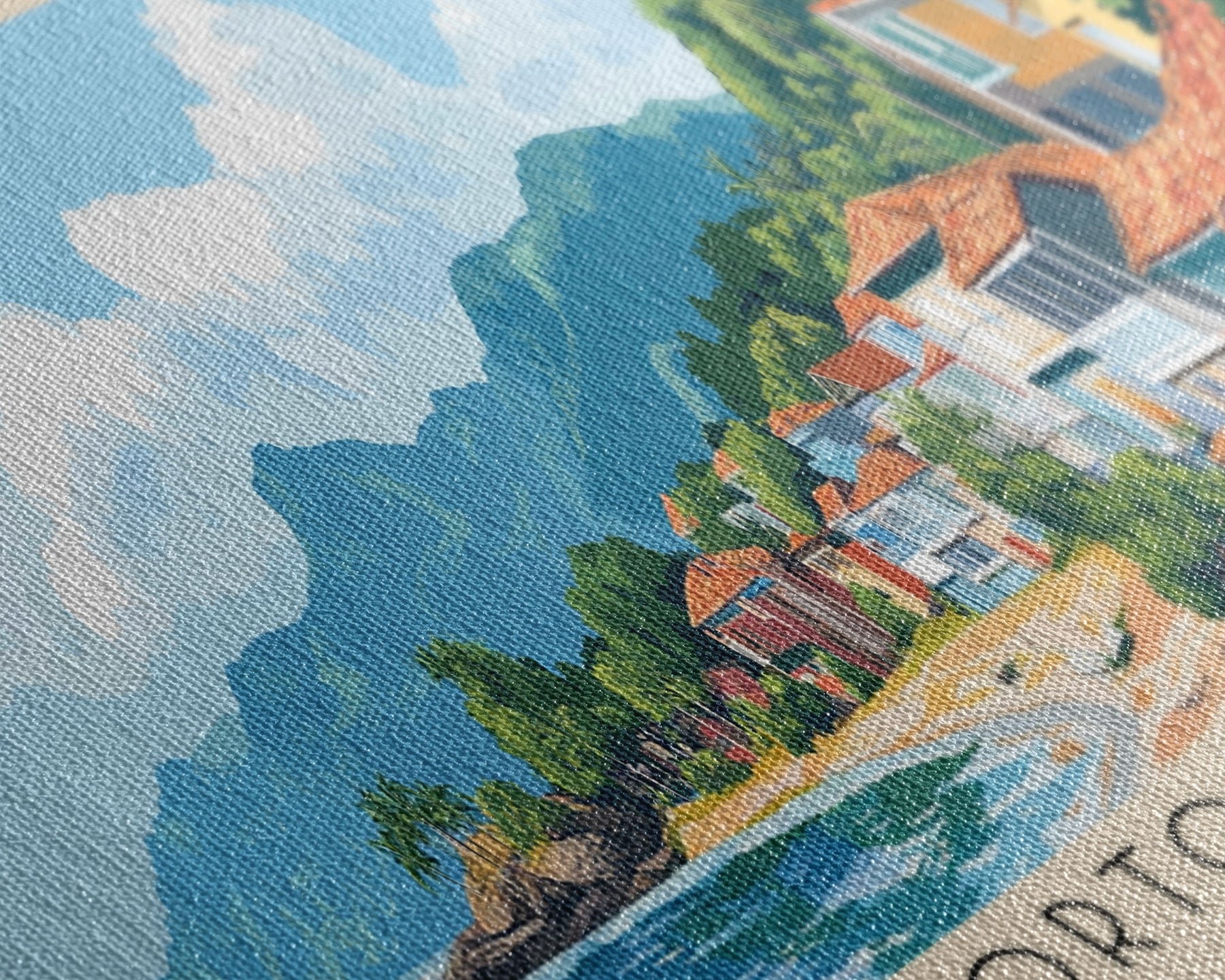 Most of our canvases are made in the USA, with the exception of canvases ordered with the light oak unstained frames, and any large canvases (24x48, 30x60, 16x48 and 20x60) ordered WITH a frame. These are temporarily made in and shipped from Europe, while we try to find a more consistent supplier in the USA.
