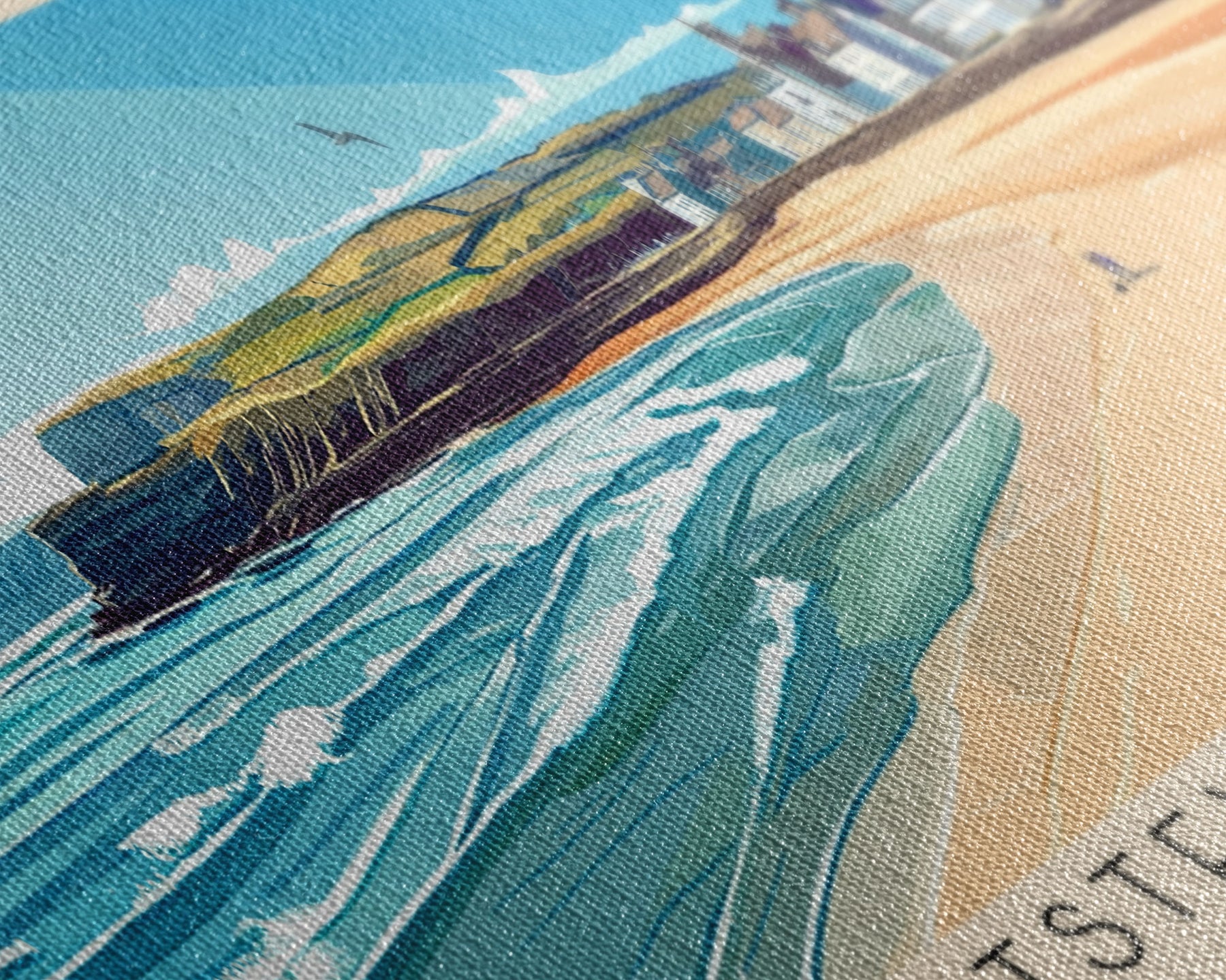 Most of our canvases are made in the USA, with the exception of canvases ordered with the light oak unstained frames, and any large canvases (24x48, 30x60, 16x48 and 20x60) ordered WITH a frame. These are temporarily made in and shipped from Europe, while we try to find a more consistent supplier in the USA.