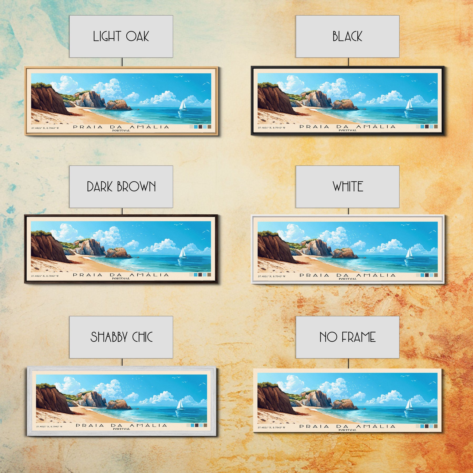 Praia da Amália, Portugal Panoramic Beach Print, Vacation Gift, Portugal Wall Art, Beach Painting, Beach Decor, Beach Painting