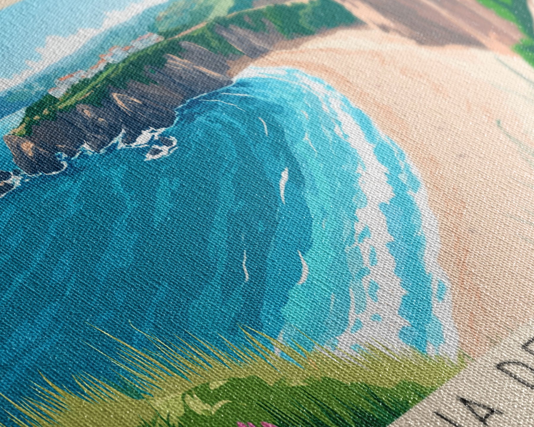 Most of our canvases are made in the USA, with the exception of canvases ordered with the light oak unstained frames, and any large canvases (24x48, 30x60, 16x48 and 20x60) ordered WITH a frame. These are temporarily made in and shipped from Europe, while we try to find a more consistent supplier in the USA.