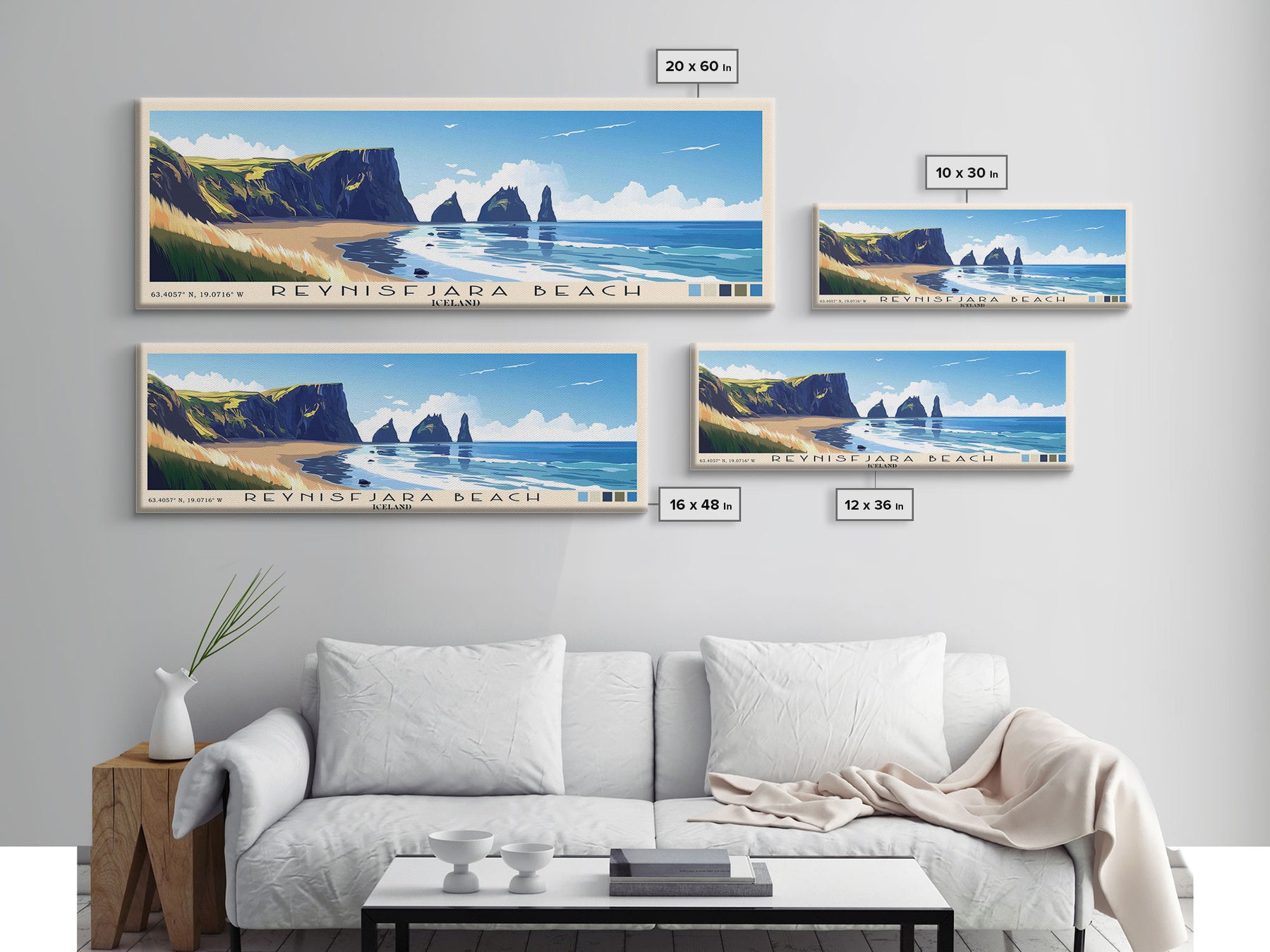 Reynisfjara Beach, Iceland Panoramic Beach Print, Vacation Gift, Iceland Wall Art, Framed Canvas Print, Framed Beach Painting