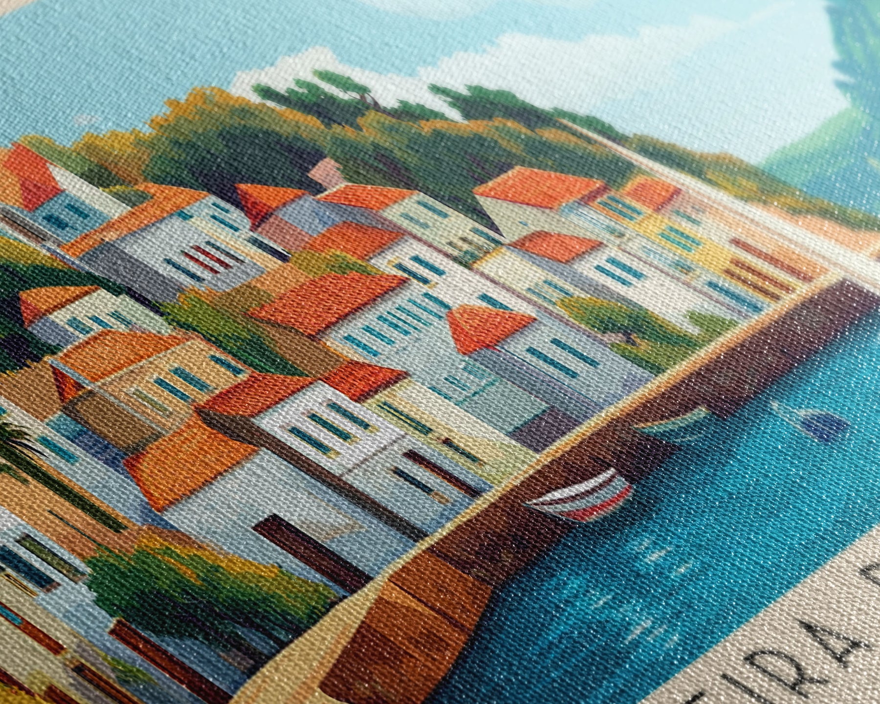 Most of our canvases are made in the USA, with the exception of canvases ordered with the light oak unstained frames, and any large canvases (24x48, 30x60, 16x48 and 20x60) ordered WITH a frame. These are temporarily made in and shipped from Europe, while we try to find a more consistent supplier in the USA.