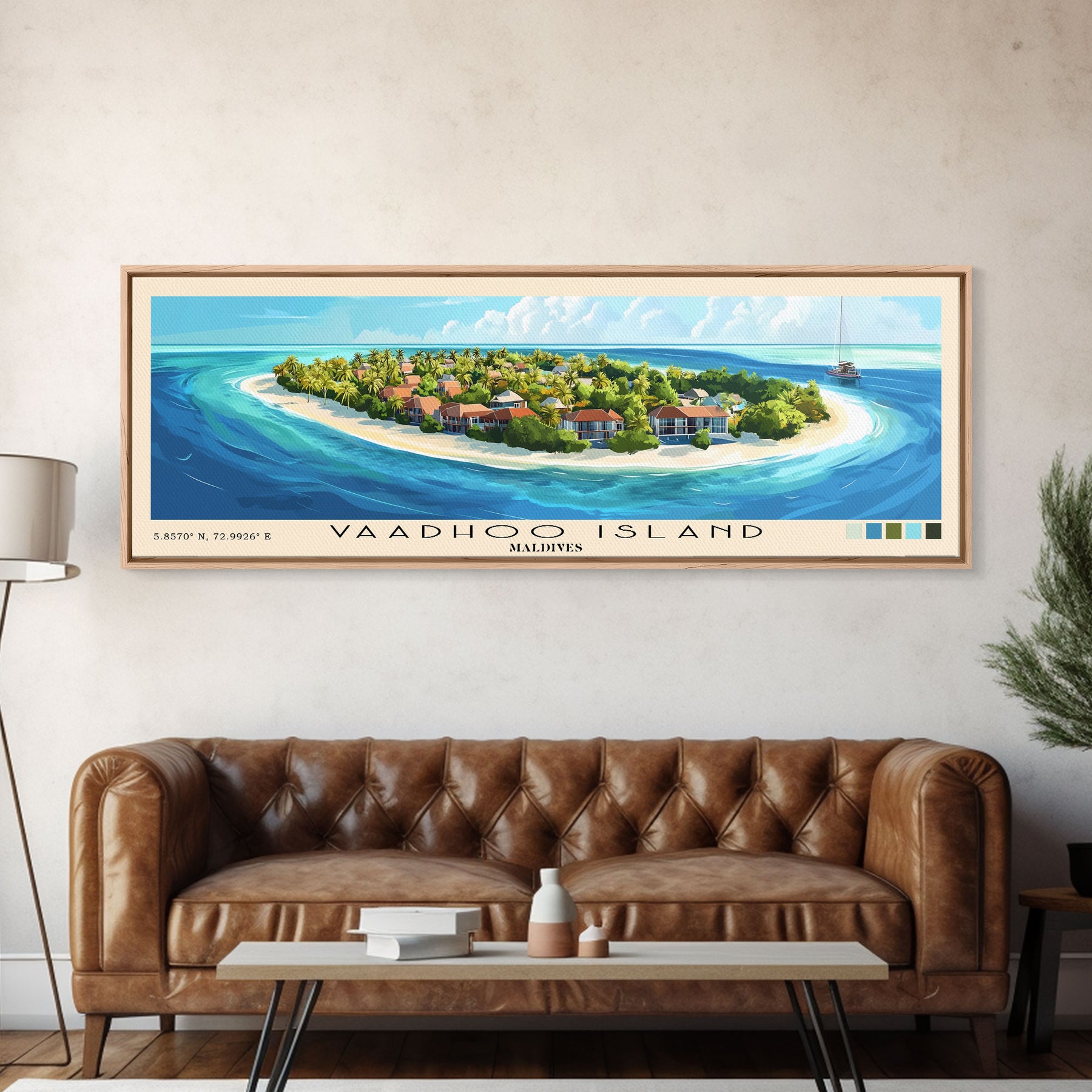 Vaadhoo Island, Maldives Panoramic Print, Vacation Gift, Maldives Wall Art, Beach Painting, Beach Decor, Large Wall Art, Wood Frame Art