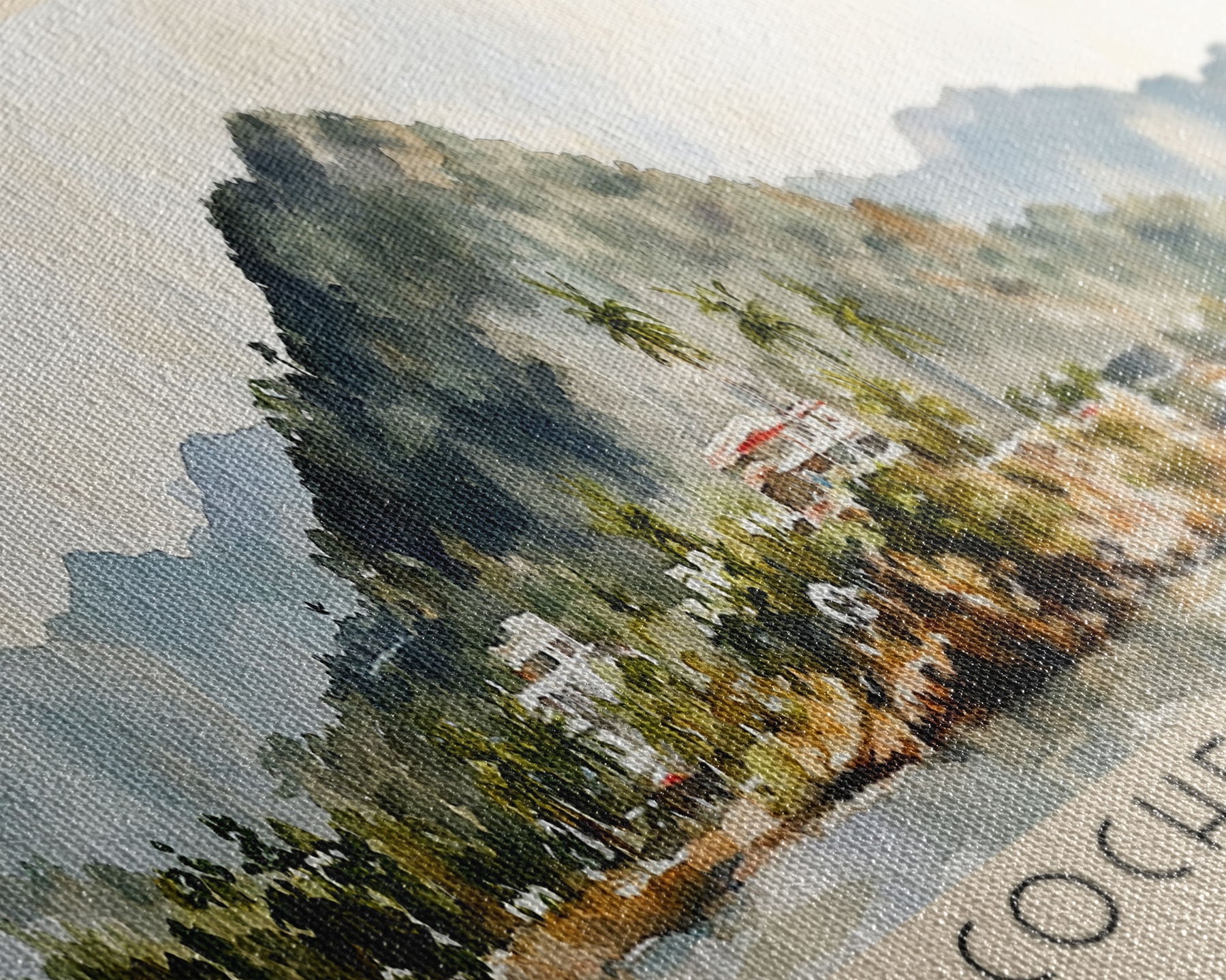 Most of our canvases are made in the USA, with the exception of canvases ordered with the light oak unstained frames, and any large canvases (24x48, 30x60, 16x48 and 20x60) ordered WITH a frame. These are temporarily made in and shipped from Europe, while we try to find a more consistent supplier in the USA.