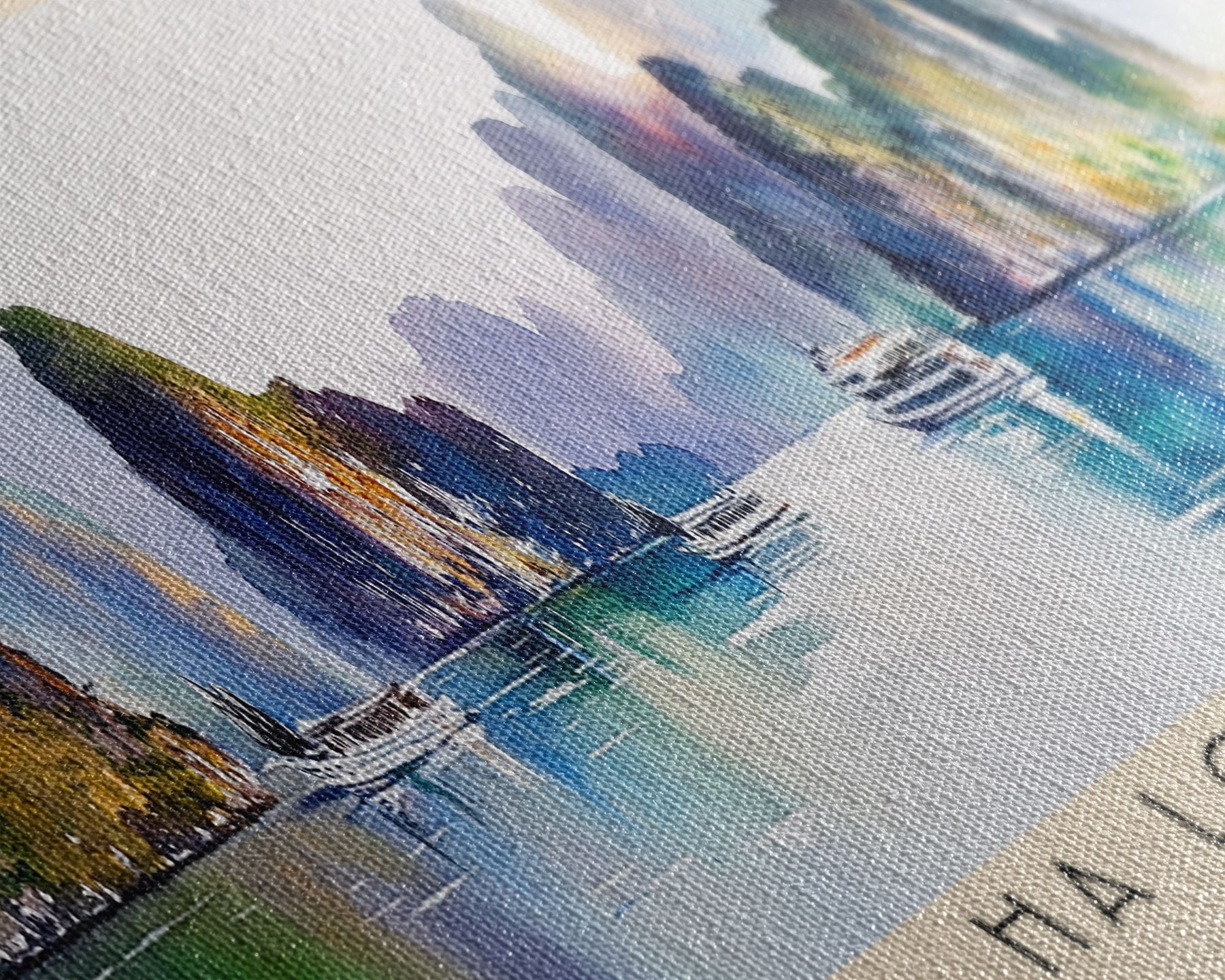 Most of our canvases are made in the USA, with the exception of canvases ordered with the light oak unstained frames, and any large canvases (24x48, 30x60, 16x48 and 20x60) ordered WITH a frame. These are temporarily made in and shipped from Europe, while we try to find a more consistent supplier in the USA.